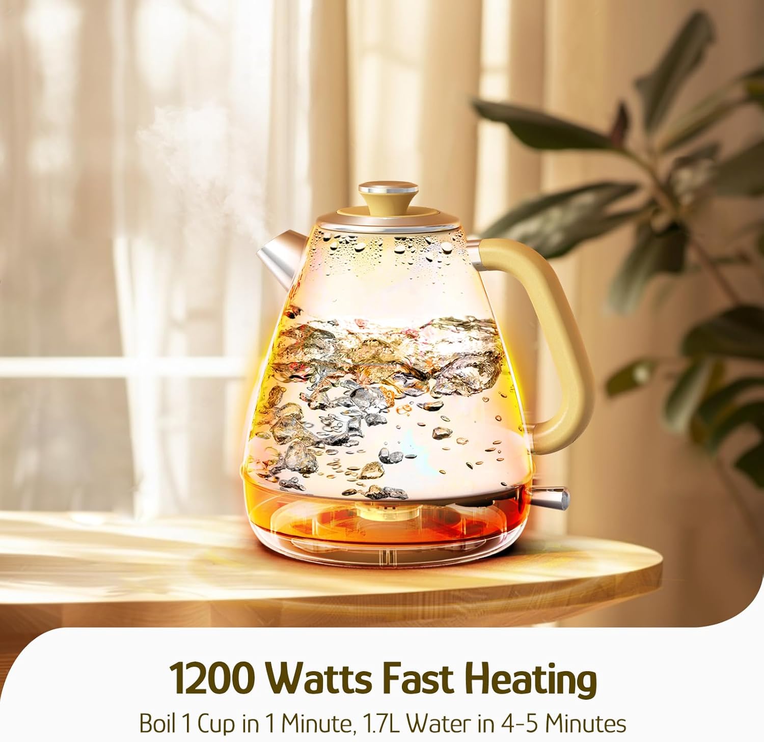 - Large Capacity, Fast Boiling: This powerful 1200 Watt tea kettle can quickly boil 1.7 liters of water in 4 to 5 minutes. Always be ready for preparing up to 7 cups of drinks for your needs.