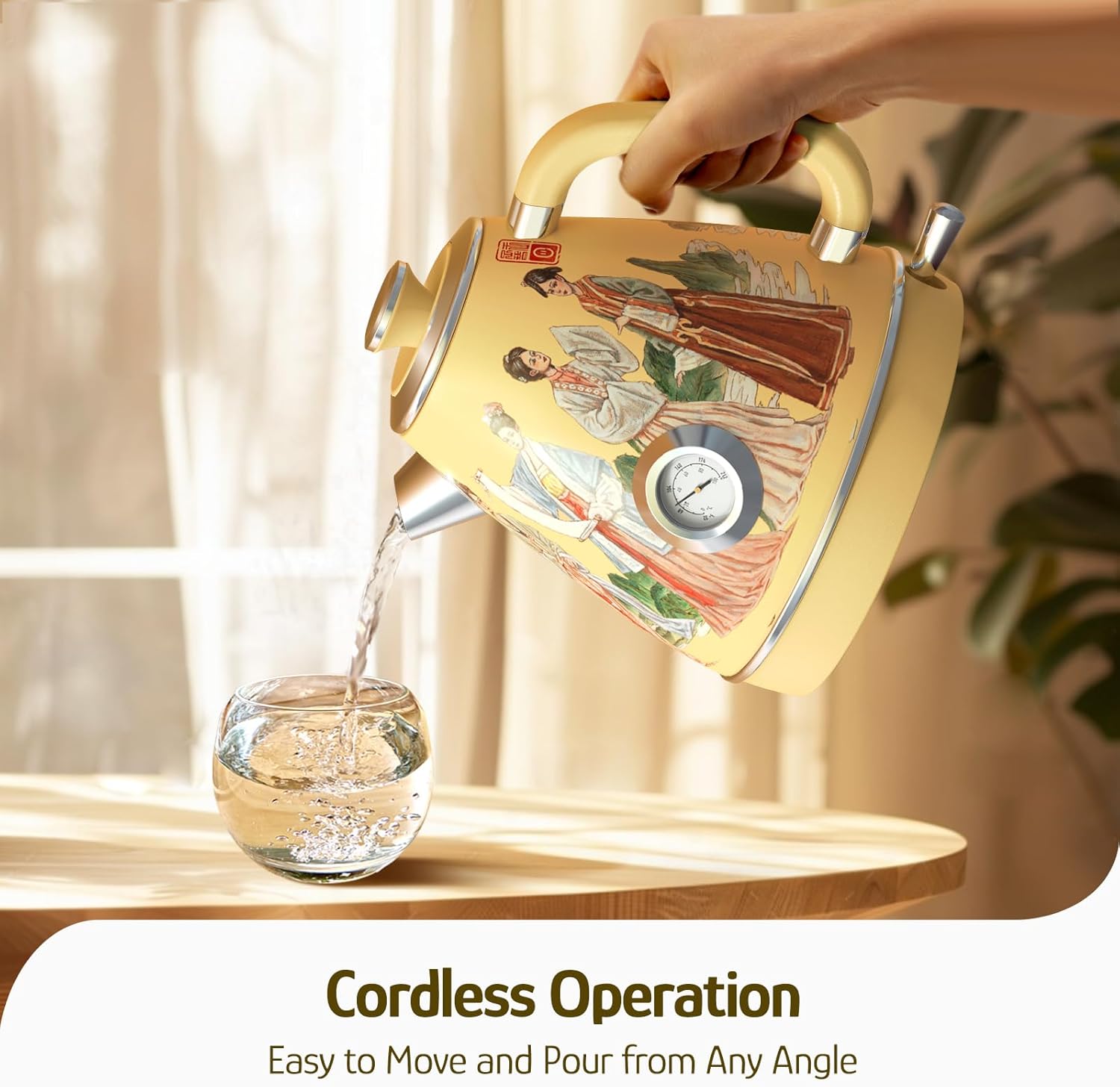 - Cordless Operation: This electric kettle has a 360-degree swivel base attached and is fully detachable for cordless operation. It is easier to pick up and pour, and is convenient for left or right-handed use.