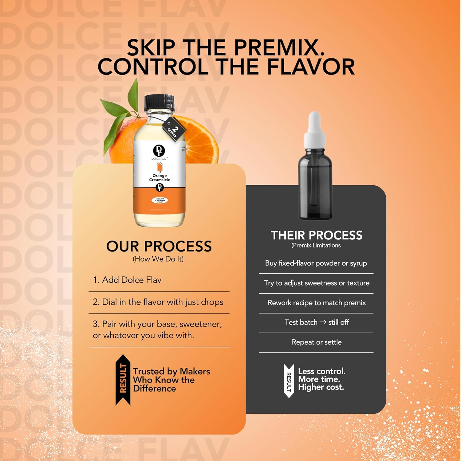 Dolce Flav Orange Creamsicle Extract - 2 Ounce Oil-Soluble Multipurpose Flavoring Ideal for Candy Making, Baking, Lip Balm, and Ice Cream - Perfect Kitchen Gift for Holidays