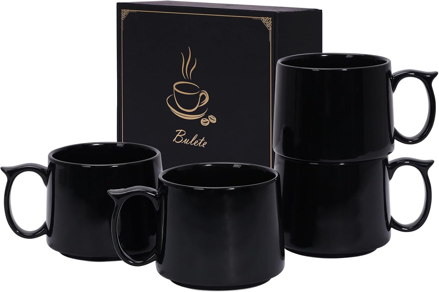19 oz Large Coffee Mugs Set of 4, Stackable Ceramic Coffee Mugs with Large Handles for Coffee, Latte, Cappuccino, Milk, Dishwasher & Microwave Safe, Ideal for Men, Women, Dads and Moms (Black)