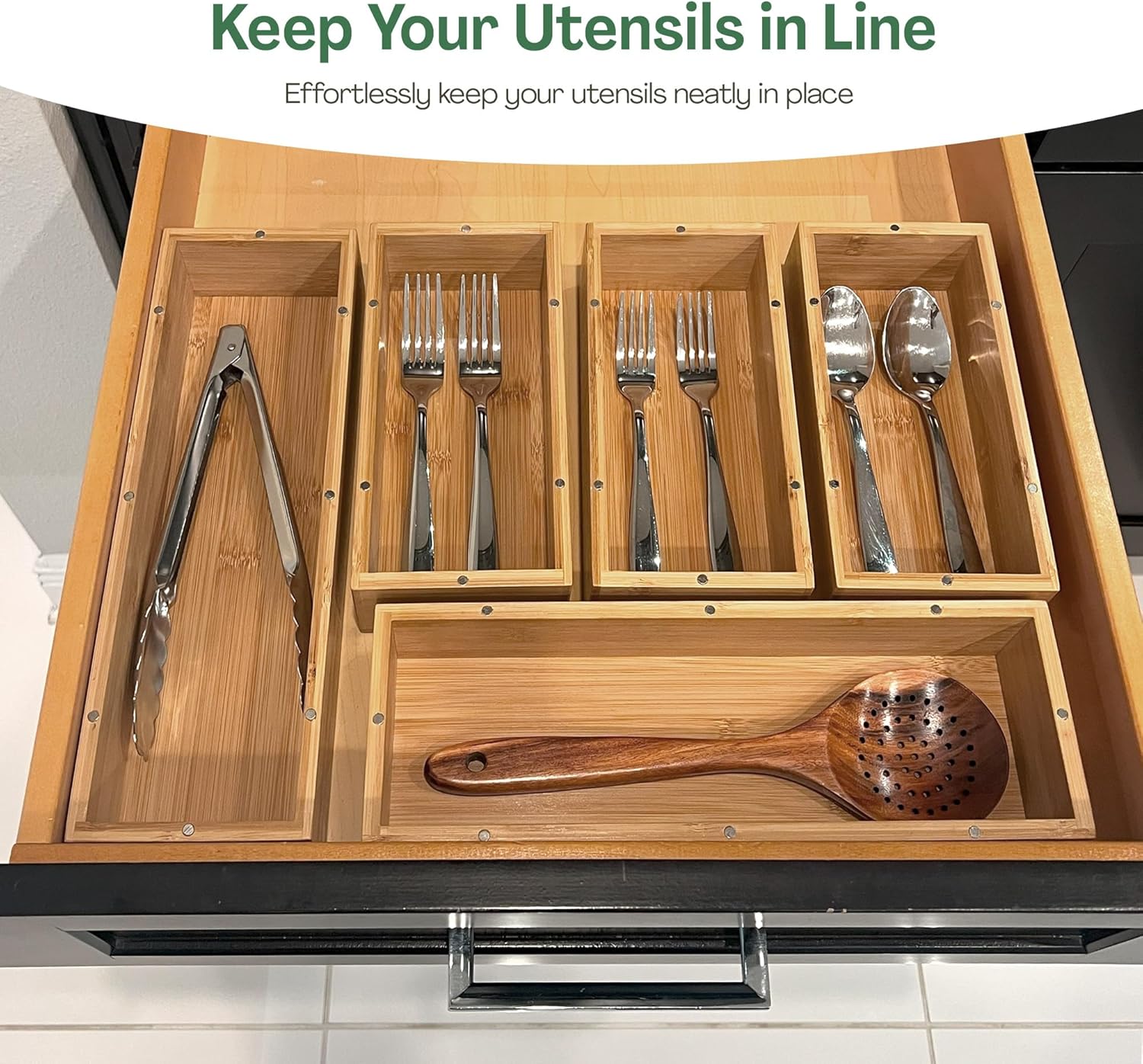 5PCS Bamboo Storage Bag Organizer Set, Multi-Use Baggie Organizers for Gallon, Quart, Sandwich, Snack Food Bags, Tea Bag, Silverware, Ideal for Kitchen, Office, Makeup, Bathroom, Utensil, Junk Drawer