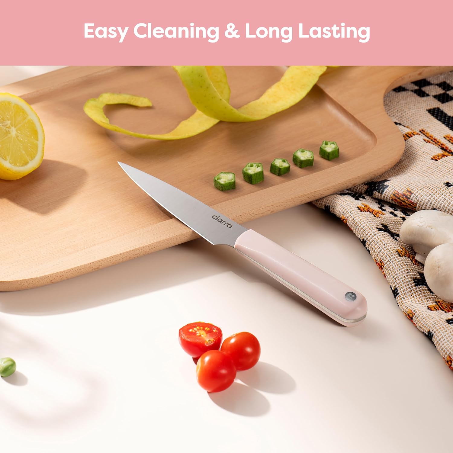 CIARRA Professional Kitchen Knife Set 4 PCS - Chef Knife Set, Bread Knife, Utility Knife, High Carbon Stainless Steel Cooking Knives with Gift Box (Pink)