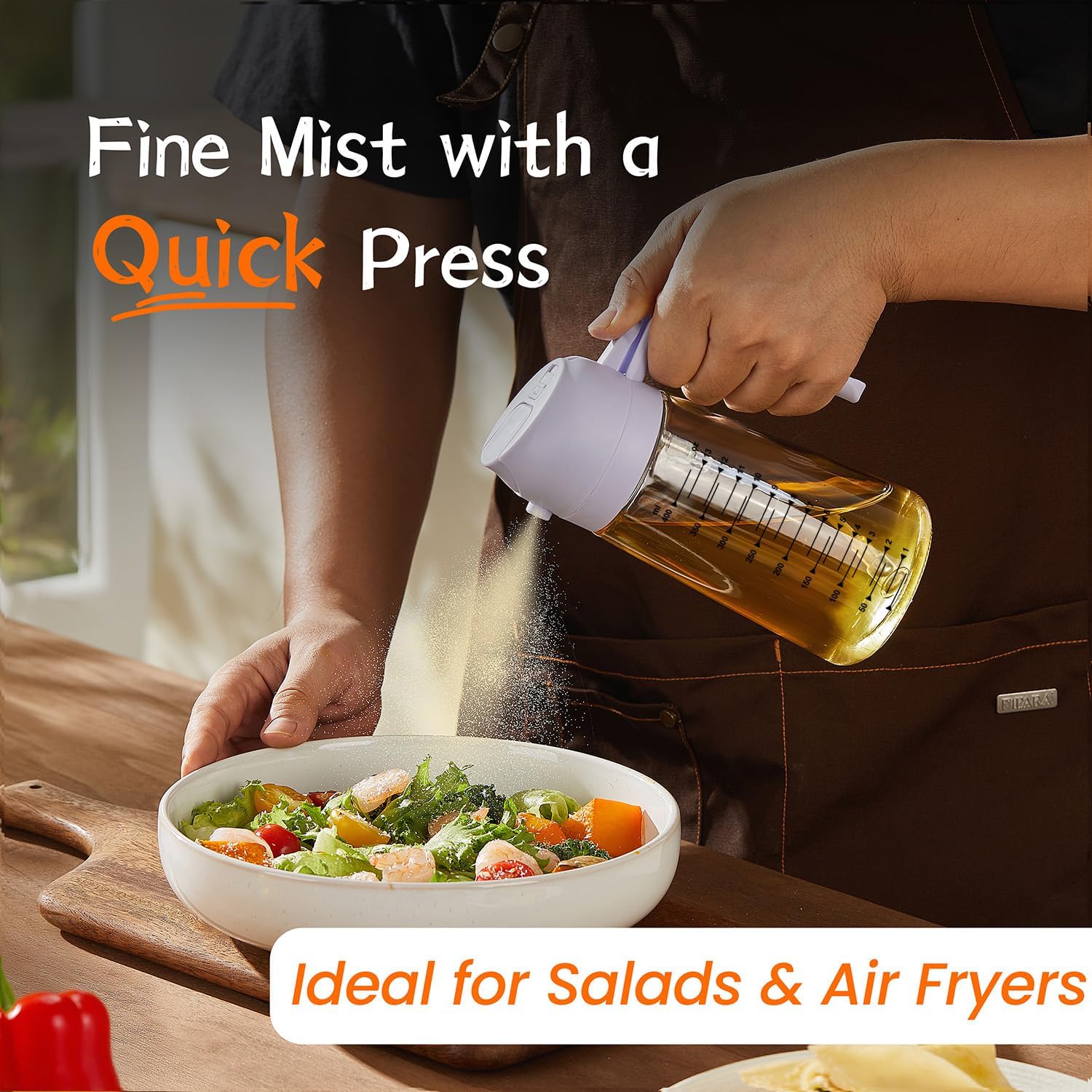 TrendPlain 16oz/470ml Glass Olive Oil Sprayer for Cooking - 2 in 1 Olive Oil Dispenser for Kitchen Gadgets, Air Fryer, Salad, and BBQ - Periwinkle