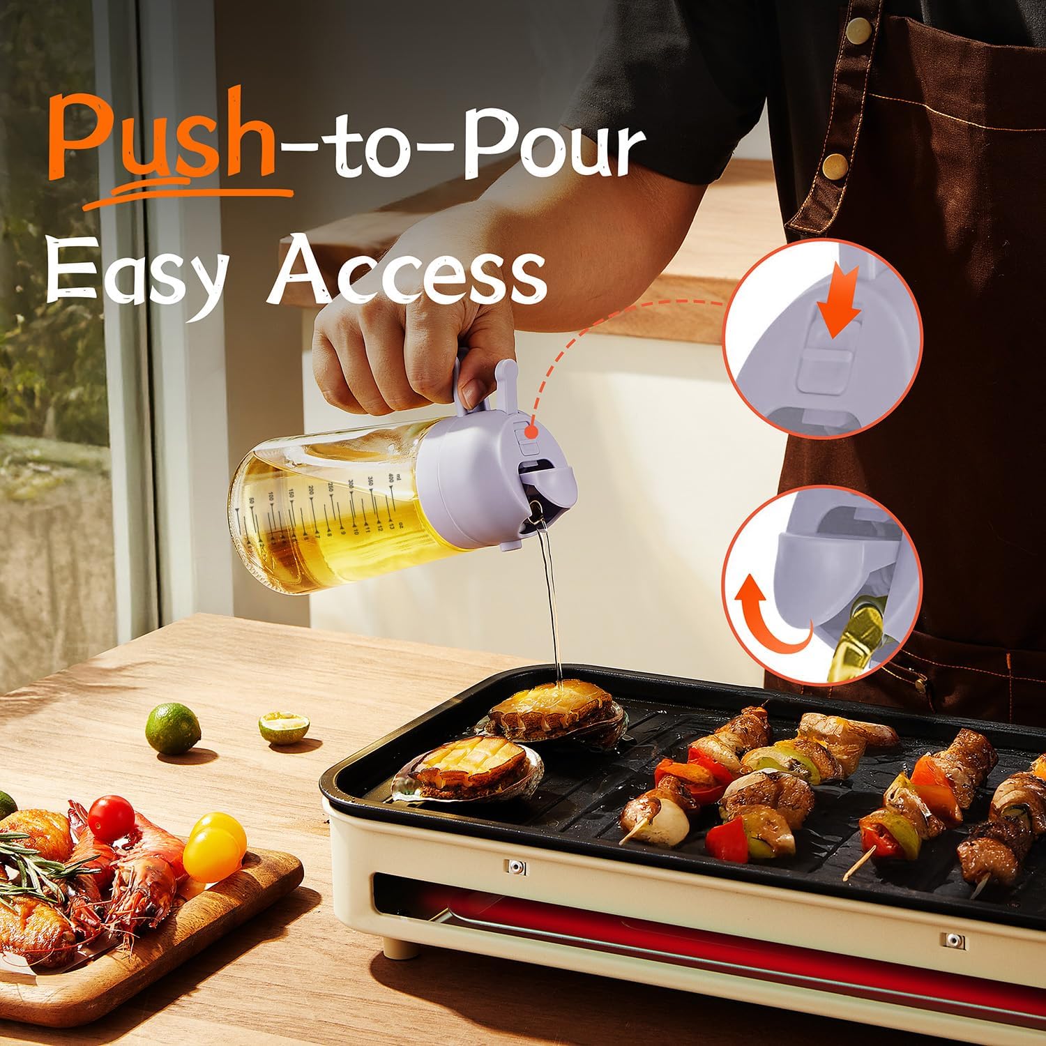 - Dual Dispensing: This 2 in 1 oil dispenser and oil sprayer allows you to spray or pour with ease. It’s a versatile oil dispenser bottle spray and pour solution, keeping your kitchen organized and efficient