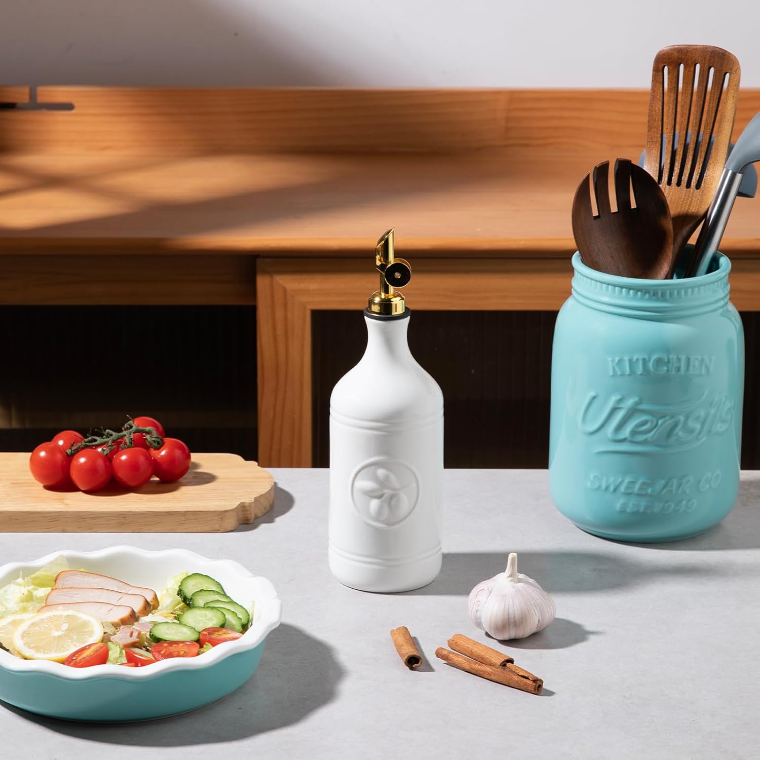 - Versatile & Practical - Sweejar ceramic oil bottle is made of high-quality, BPA-free thick ceramic, protecting fluids from heat, light and oxygen to maximize freshness. Ideal for storing various liquids like olive oil, vinegar, etc. It's widely used in kitchens, restaurants, bars and other places.