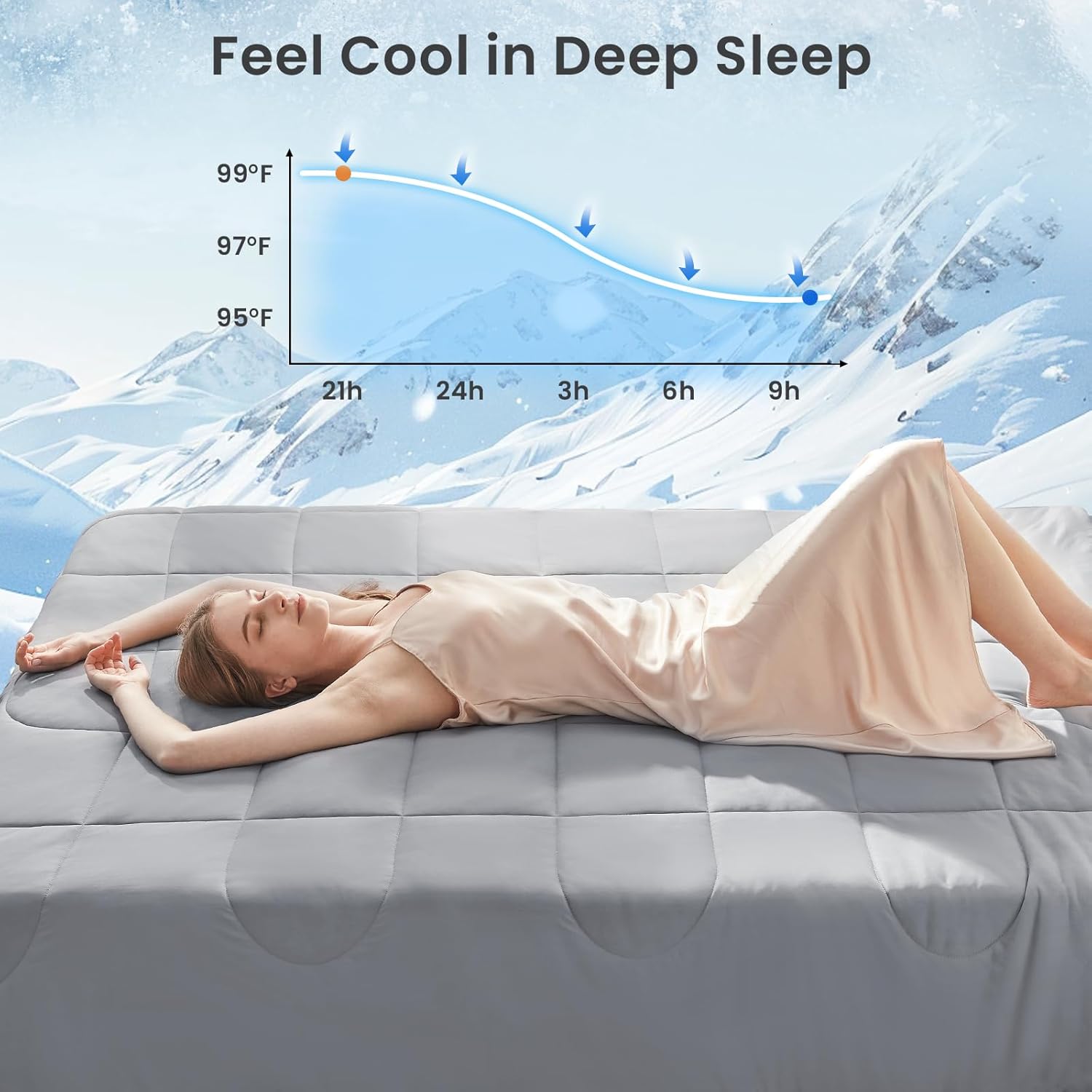 HYLEORY Cooling Comforter King Size - Summer Cooling Blanket for Hot Sleepers/Night Sweats, Double-Sided Cold Touch Silky Ice Comforters, Breathable Lightweight Beddings, Cool Gray, 108"x90"