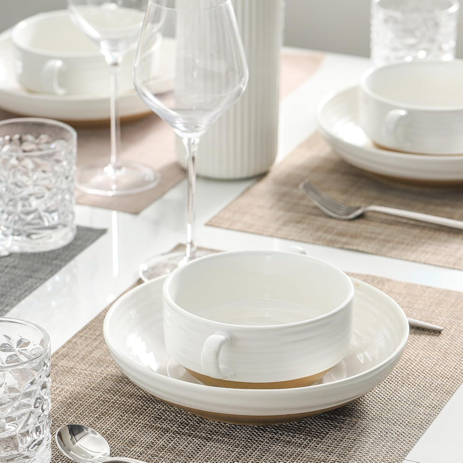 - Elegant White Design with Sturdy Handles: Featuring a sleek white finish, these soup bowls with handles bring sophistication to your table while ensuring a secure and comfortable grip