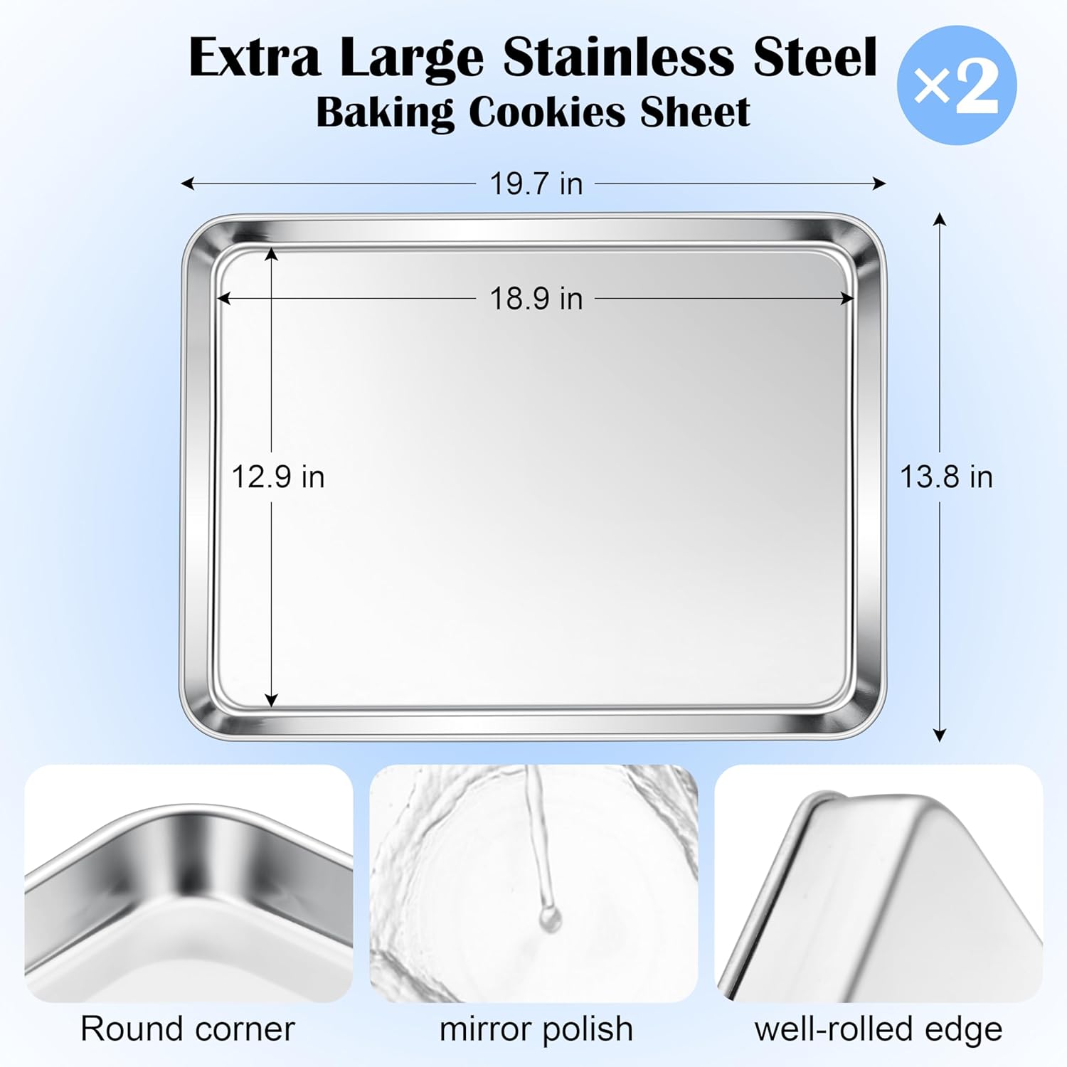 - 【EASE OF CLEANING & MAINTAINING】 Seamless steel with round corner prevents food from getting trapped, Polished surface remains mirror-like, resist stains and releases baked foods easily, Make cleaning is effortless and stay looking new for longer, Easy maintain to free your hands