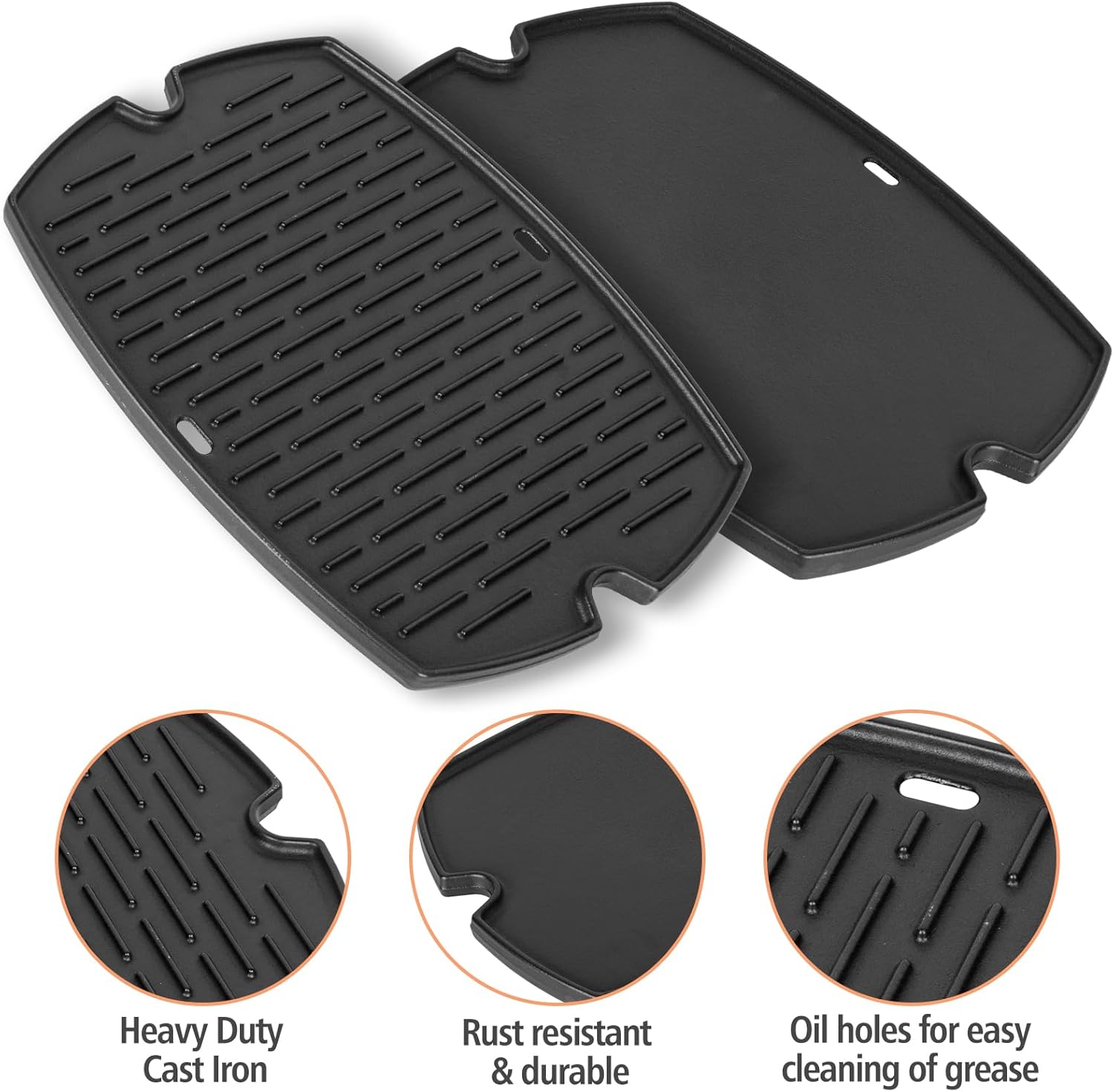 - Dimension & Package: Include 1 Pack cast iron grill griddle, measure is 21.4"L x 15.2"W. This is the best weber gift for people who enjoy barbecue. Please kindly make check the SIZE and MODEL of your parts and compare with ours BEFORE purchasing