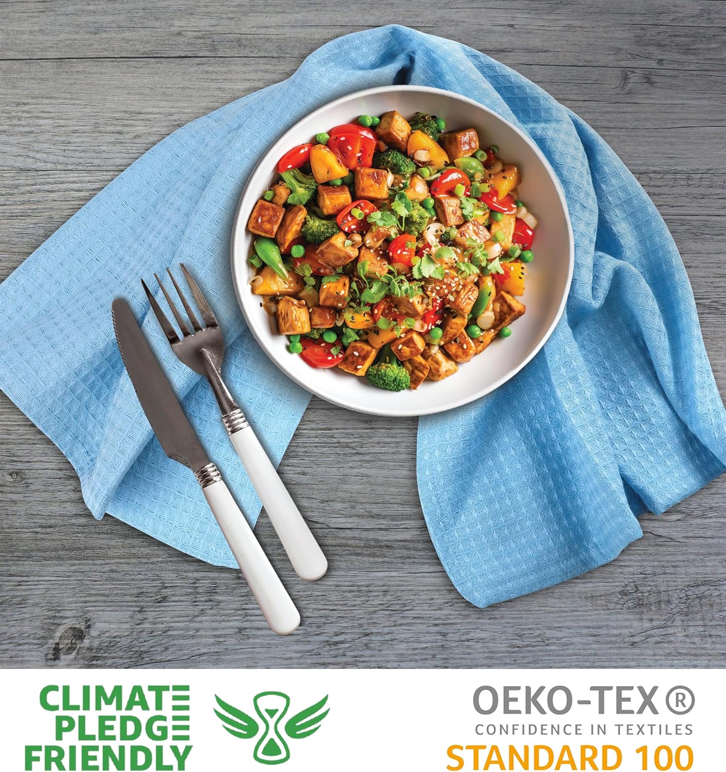- MACHINE WASHABLE : Easy to maintain, these durable napkins and towels can be machine washed multiple times in cold water, without having their color fade.