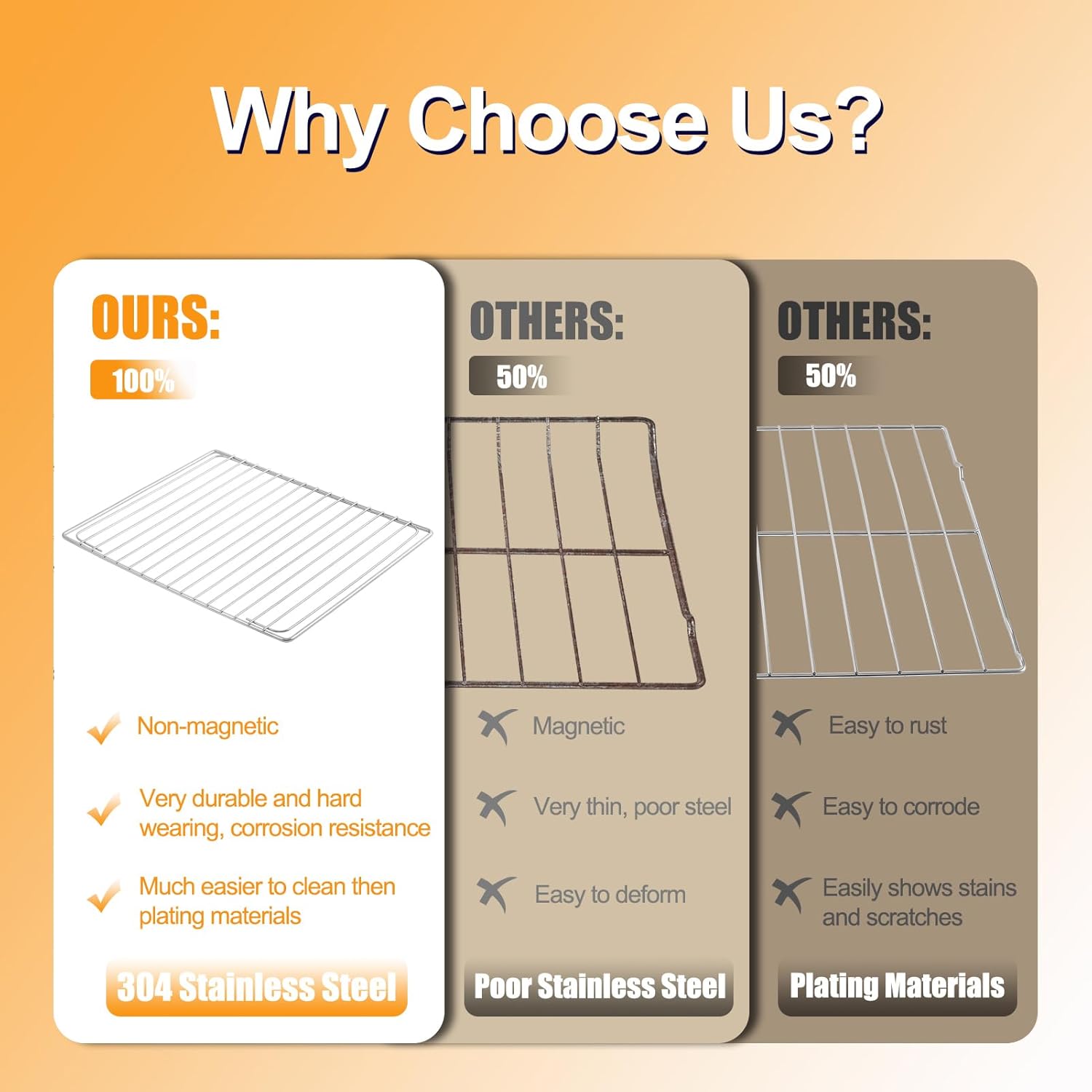 - 【UPGRADE HEAVY AND DURABLE CONSTRUCTION】The SP0002651 breville oven racks are made of premium 304 stainless steel that stronger and more sturdy than others, not easy to deform. We added shine for a premium appearance, its has superior mirror finish to reduce food sticking. With proper maintenance, our breville toaster oven racks can last pretty long. Not like other plating materials, which easy to rust and deform