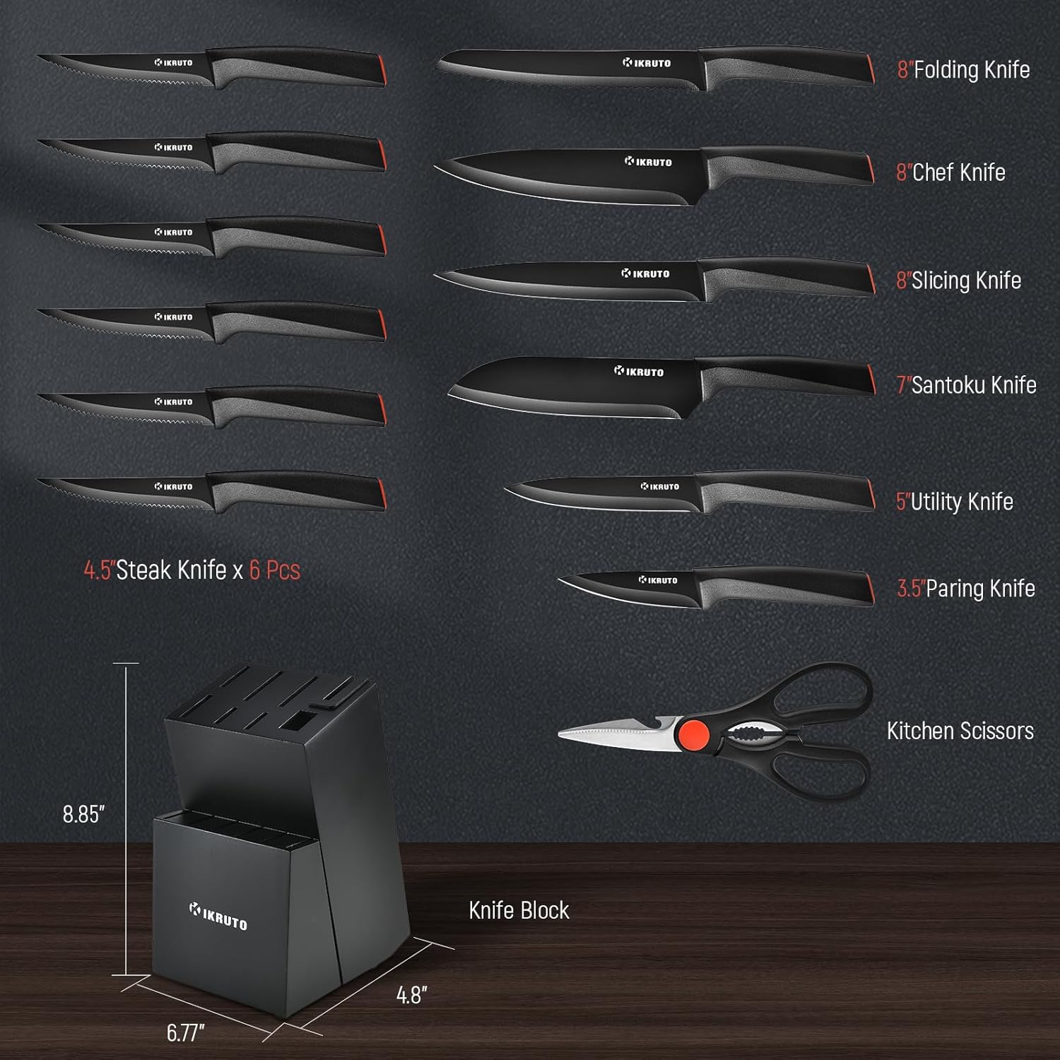 - Easy cleaning & safe storage: Designed for easy hand washing with warm soapy water. The included knife block provides safe storage, protecting blades and extending their lifespan