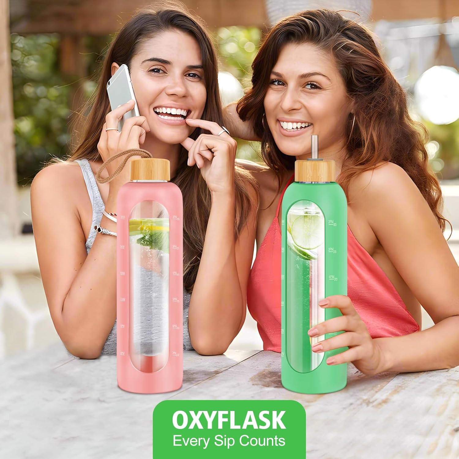 - TRACK DAILY HYDRATION GOALS: Stay on top of your water intake with this glass water bottle with time marker, featuring clear volume indicators. Whether you're at work or exercising, itβs a simple, effective tool to meet your health and hydration goals.