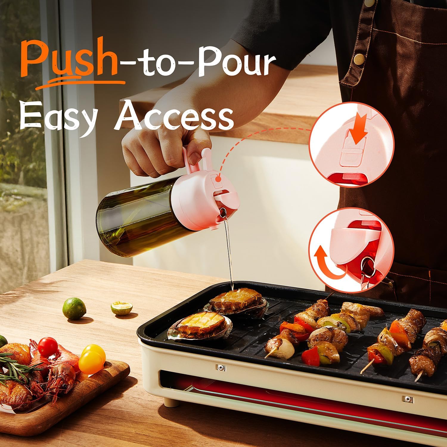- Innovative Spray Nozzle Design: Delivers precise control—quick presses release a fine mist, while slow presses provide a steady stream. Whether you're preparing meals in the kitchen or barbecuing outdoors, this reliable cooking oil sprayer doubles as one of your must-have grilling accessories