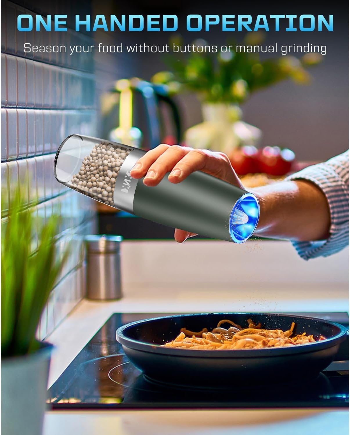 - 【MULTI-PURPOSE SPICES】Electric salt or pepper grinder is suitable for grinding Himalayan salt, sea salt, black pepper, white pepper and other small particle spices. The automatic pepper grinder or salt mill shaker Perfect for housewarming gifts, wedding gifts, birthday gifts, Christmas gifts and anniversary gifts.Also suitable for storage as a Pepper and Salt shaker. (Spices and batteries are not included)