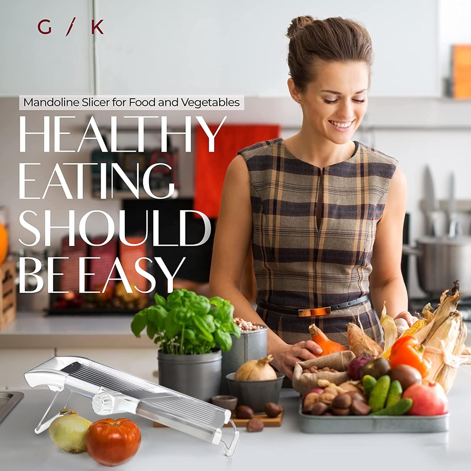 Gramercy Adjustable Mandoline Food Slicer, Mandoline Slicer for Kitchen, Mandolin, Potato, Tomato, Carrot, Vegetable, Fruit and Onion Cutter - Stainless Steel - INCLUDING 1 Pair Cut-Resistant Gloves