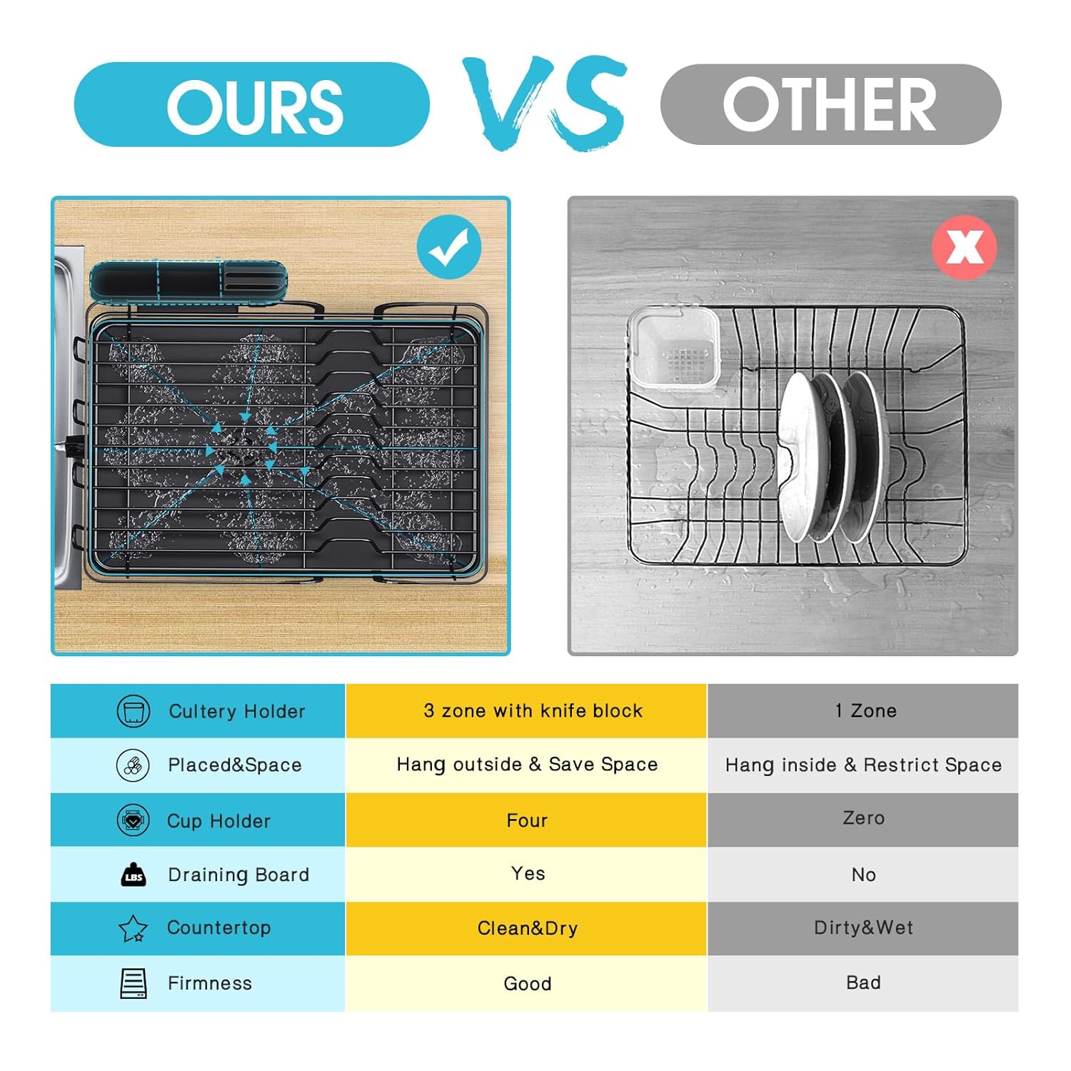 - 【Space-Saving Dish Drainer】Compact design, our dish drying rack measures 40.33 x 37.85 x 15.15 cm (15.87x 14.91 x 5.96inches), you can hold 8 plates along with other bowls, glasses, and utensils. It keeps your kitchen counter dry and organized