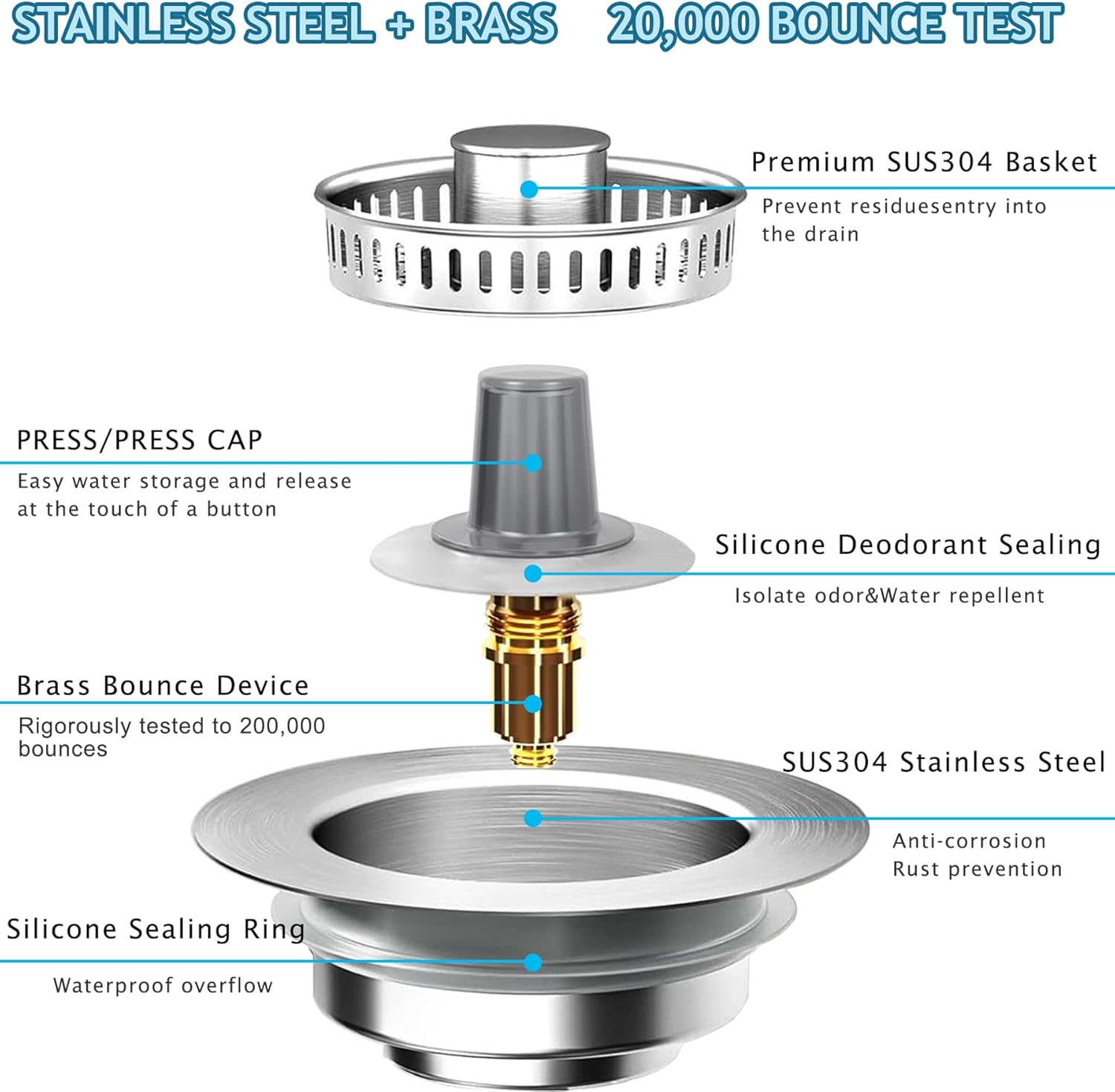 - EFFICIENT ANTI-CLOGGING DESIGN FOR KITCHEN USE: Featuring an upgraded bounce core and fine mesh strainer, this stopper provides superior anti-clogging performance. Itβs perfect for filtering food waste, preventing blockages, and ensuring smooth drainage in kitchen sinks