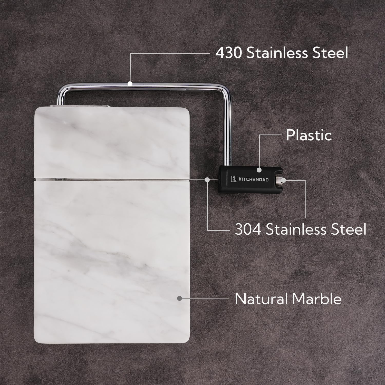 - 50% Stronger Wires: KITCHENDAO cheese slicer adopts the 2nd gen wire fixing mechanism which makes the wire be fixed on 3 stress points, while the other product’s wire is fixed on only 2 stress points, which makes our fixing strength increased by 50%, and the wire won’t be easily deformed