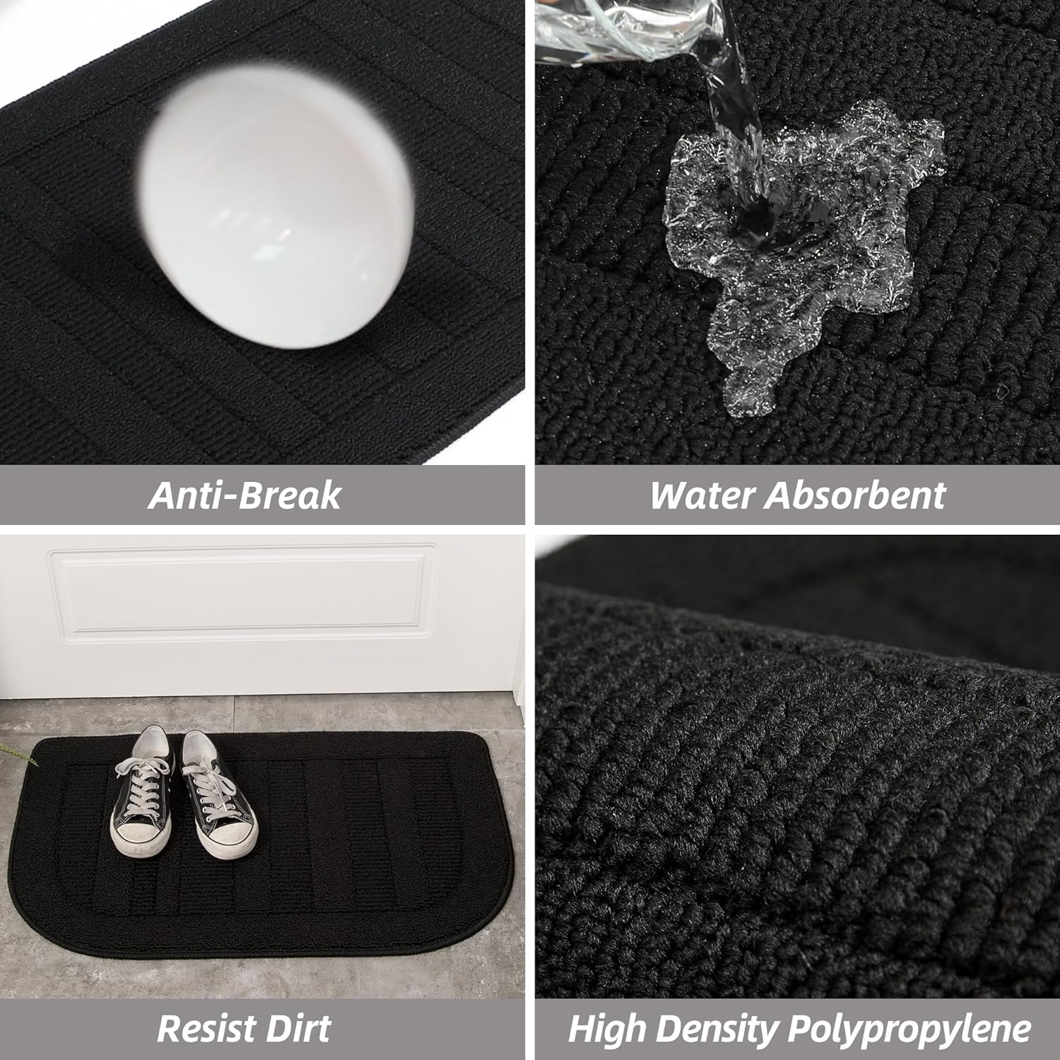 BEQHAUSE 30x18 Inch Kitchen Rug Mat Durable Kitchen Rugs Non-Slip Washable Absorbent Kitchen Mats for Floor Dirt-Resistant Semicircular Kitchen Mat (Black, 2PCS)