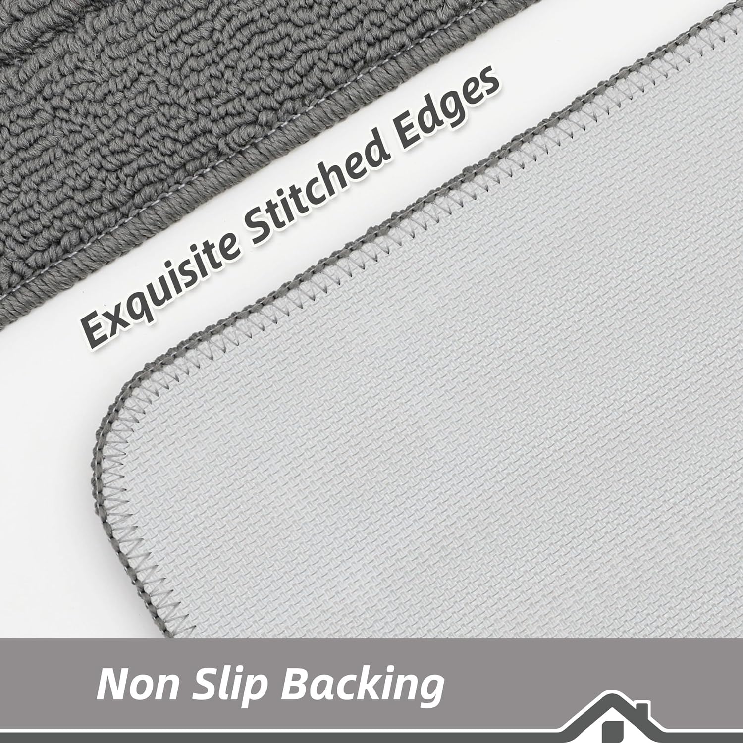 BEQHAUSE 30x18 Inch Kitchen Rug Mat Durable Kitchen Rugs Non-Slip Washable Absorbent Kitchen Mats for Floor Dirt-Resistant Semicircular Kitchen Mat (Grey, 2PCS)