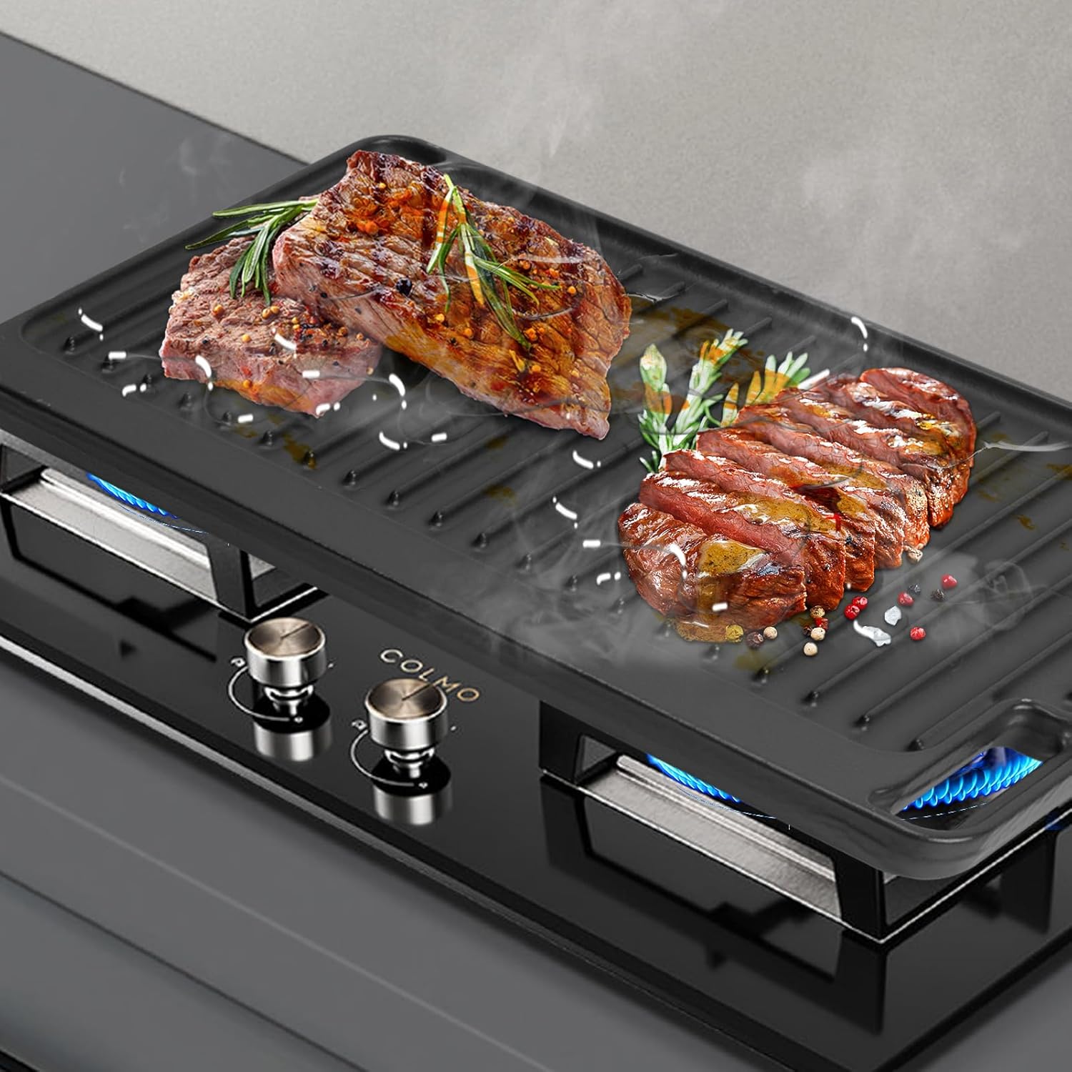 16.75" X 9.5" Reversible Cast Iron Griddle for Gas Grill, Flat Griddle Pan for Gas Stove, Pre-Seasoned Oven Top Grill pan,Upgrade Double Burner Griddle for Indoor & Outdoor Cooking Accessories