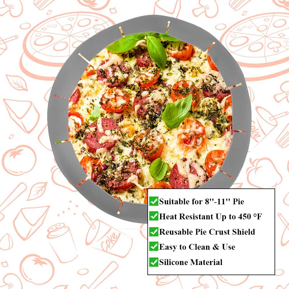 - Cover the Edges of the Pie Crust: Place this silicone heat-resistant pie crust shield on the edges of the pie crust, pizza, and then put it into the oven, which will make the pie crust from burning when baking, and easily create a delicious pie or pizza