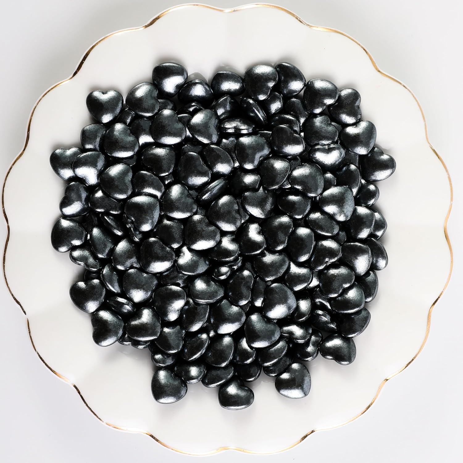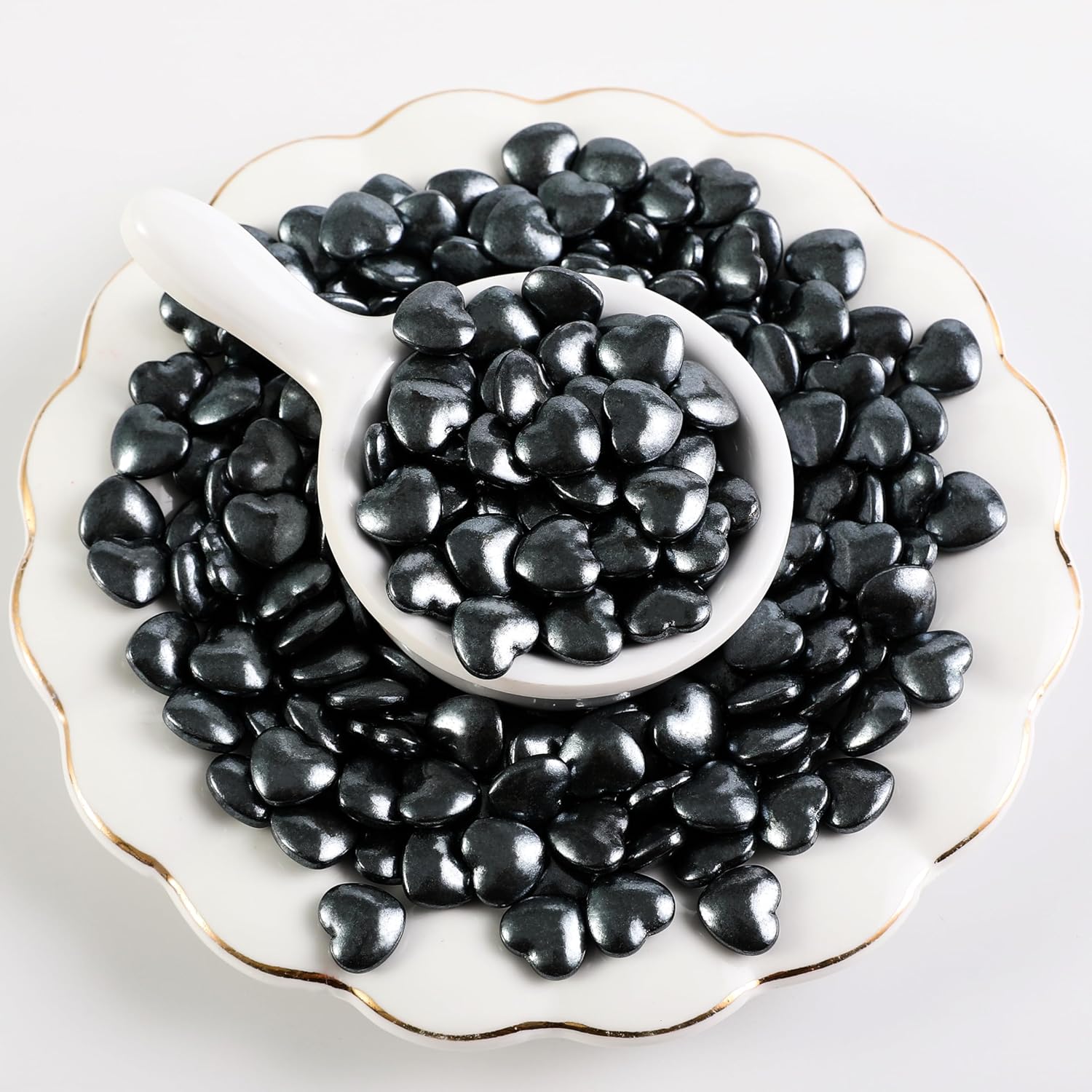 Kasvan Black Heart Shapes Sprinkles - Edible Candy Pearls 130g/4.58 Oz, Mix Size, Baking Cake Decorations, Ice Cream Toppings and Cookie Decorating, Wedding Party Chirstmas Supplies (Black)