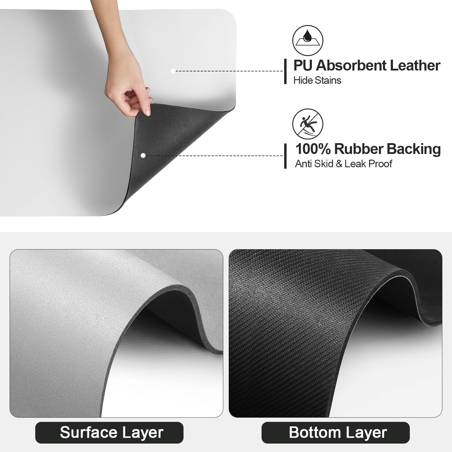 Dish Drying Mat for Kitchen Counter | Coffee Bar Mat for Countertops | Heat Resistant Drainer Mat with Non-slip Rubber Backed | Hide Stain Kitchen Absorbent Draining Mat | Light Grey 18"x32"