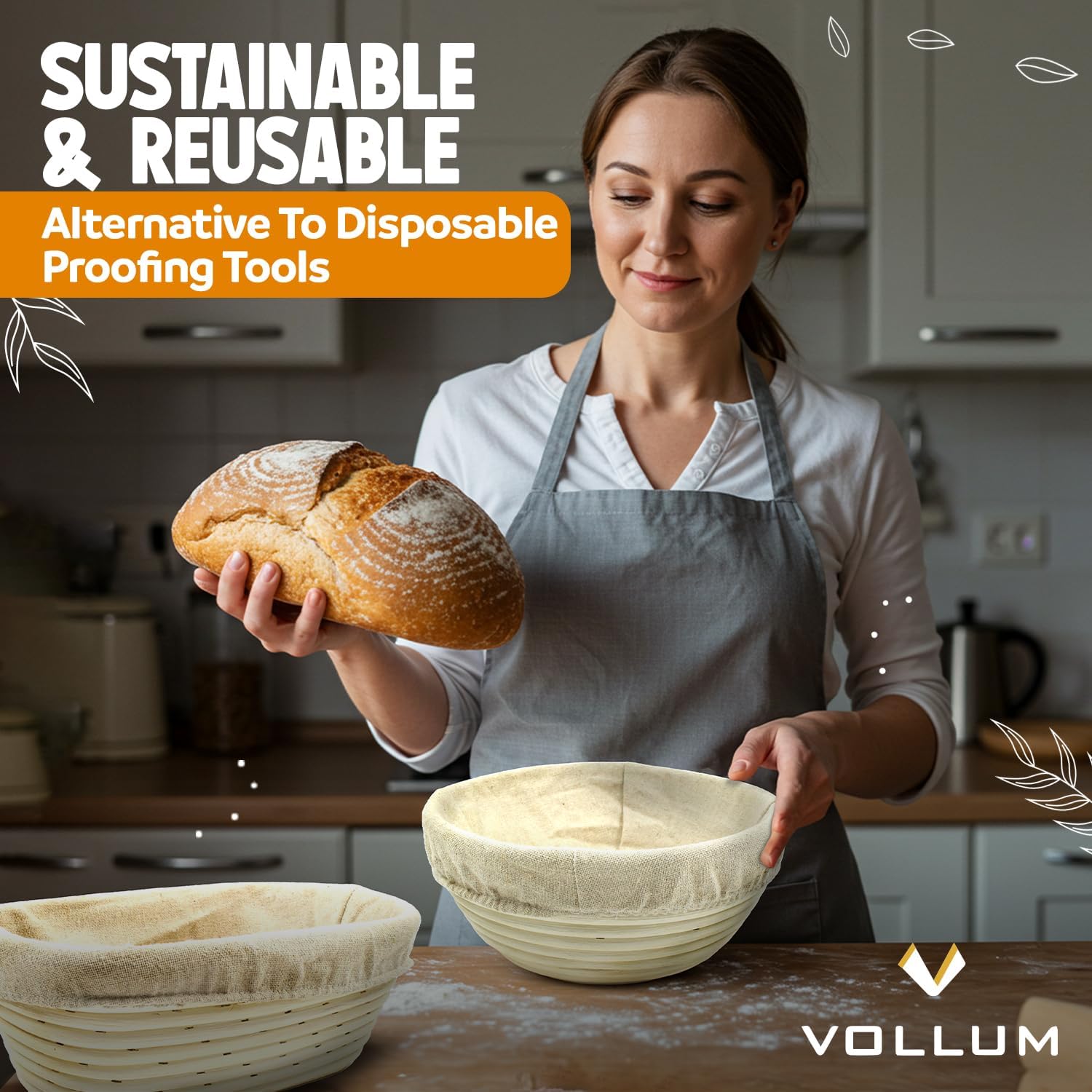Banneton Bread Proofing Basket Sourdough Proofing Basket for Beginners & Professional Bakers, Handwoven Rattan Cane Bread Maker with Linen for Artisan Breads, 8.5 x 3 In, 1-Lb Round - Set of 2
