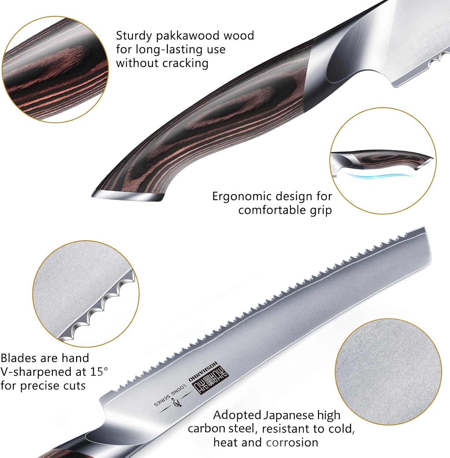 - 【Japanese Super Steel】Made of Japanese 10Cr15CoMoV high carbon stainless steel and vacuum heat-treated at high temperatures for exceptional durability and improved anti-corrosion performance, which ensure precision and smoothness when cutting bread.