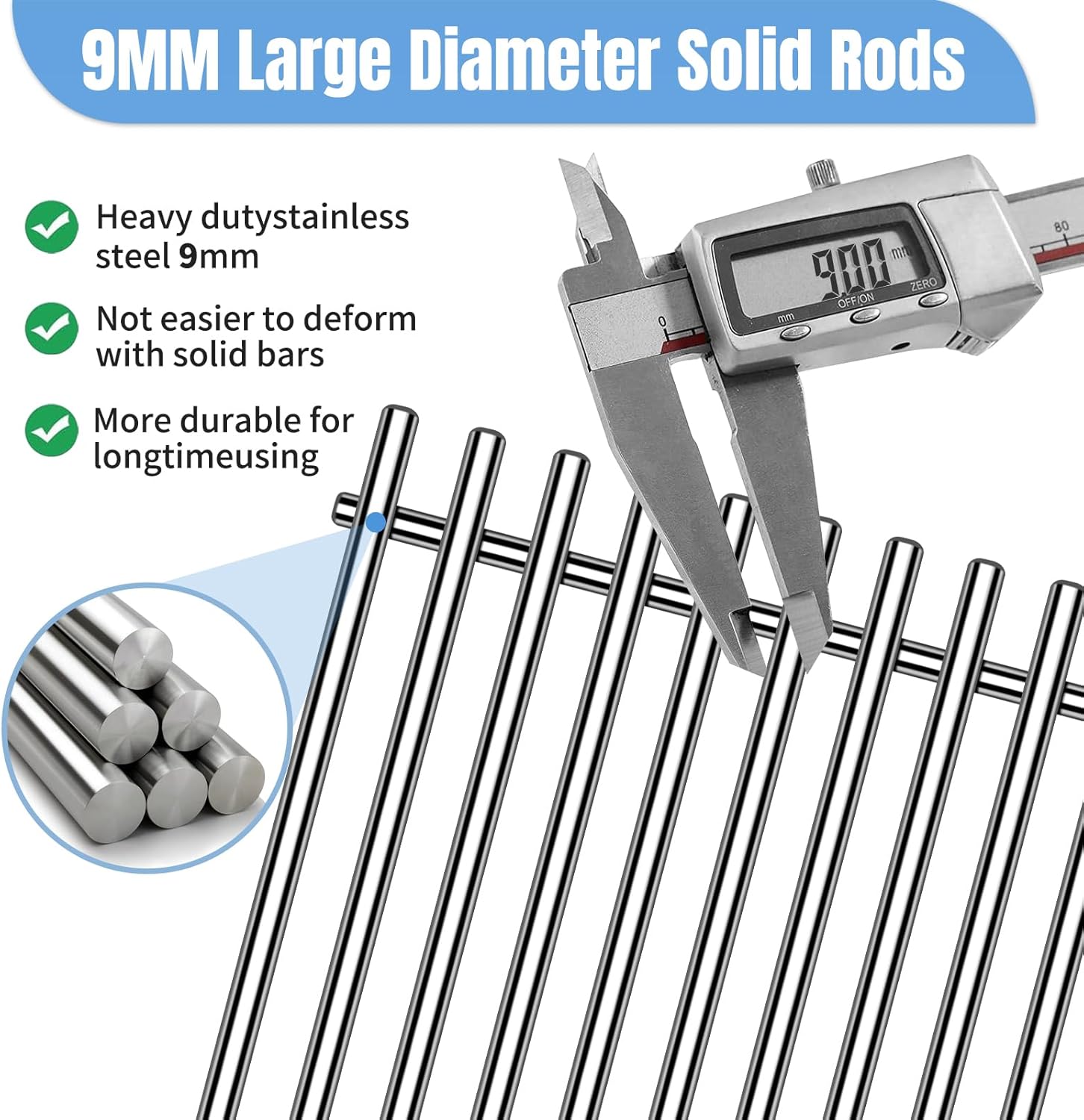 - Thicker 9MM Solid Rods,the grill grate With a solid rod thickness of 9MM, these grates are significantly thicker than standard 5MM or 7MM options.,Dimensions: 15" x 11 1/4" Each, 15" x 22 1/2" Total. ➤ Double-check the dimensions of your existing grates before ordering!