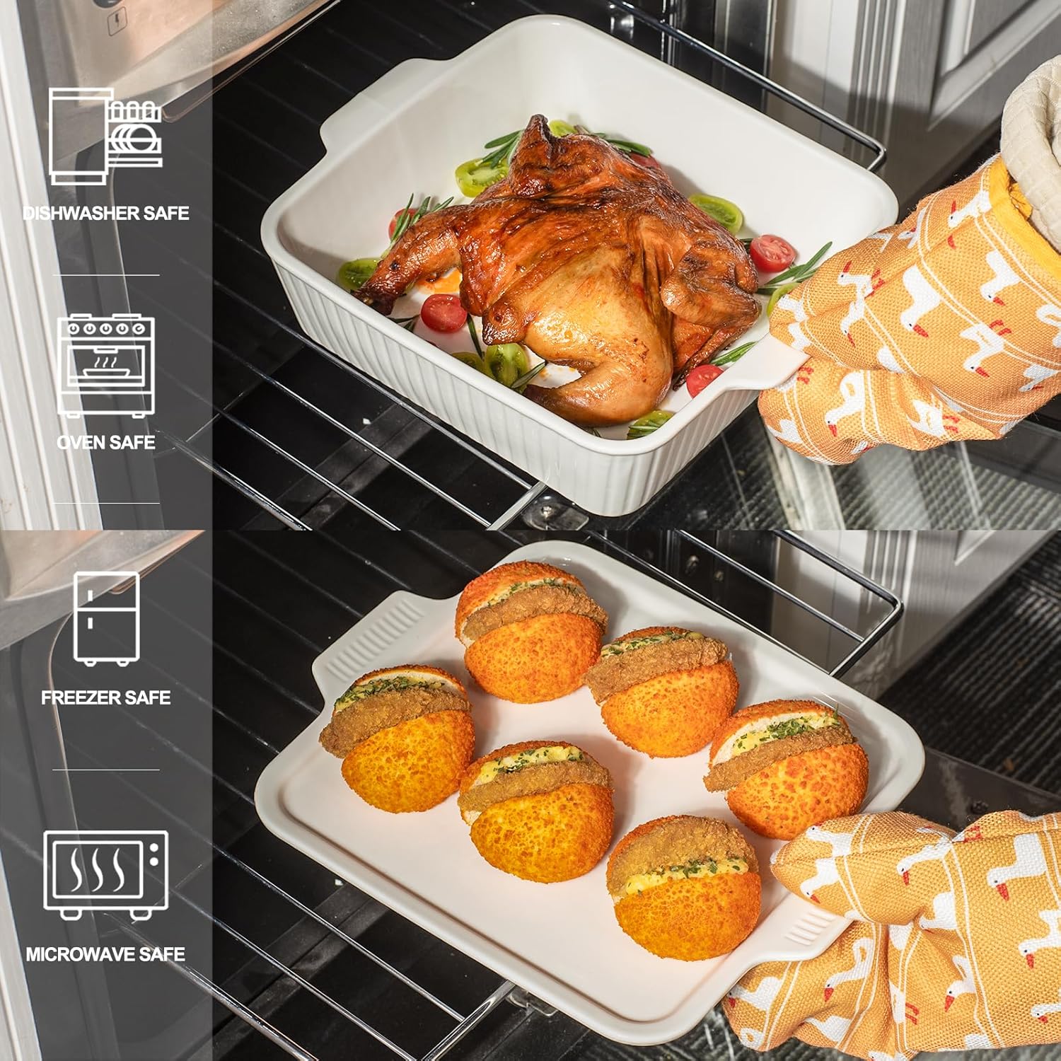 - HIGH-QUALITY MATERIAL: Crafted from durable ceramic and fired at high temperatures, this ceramic baking pan can withstand both high and low temperatures. Itβs safe for use in the refrigerator, microwave, and oven, making heating food a breeze. The robust design ensures it wonβt easily break, providing long-lasting use.