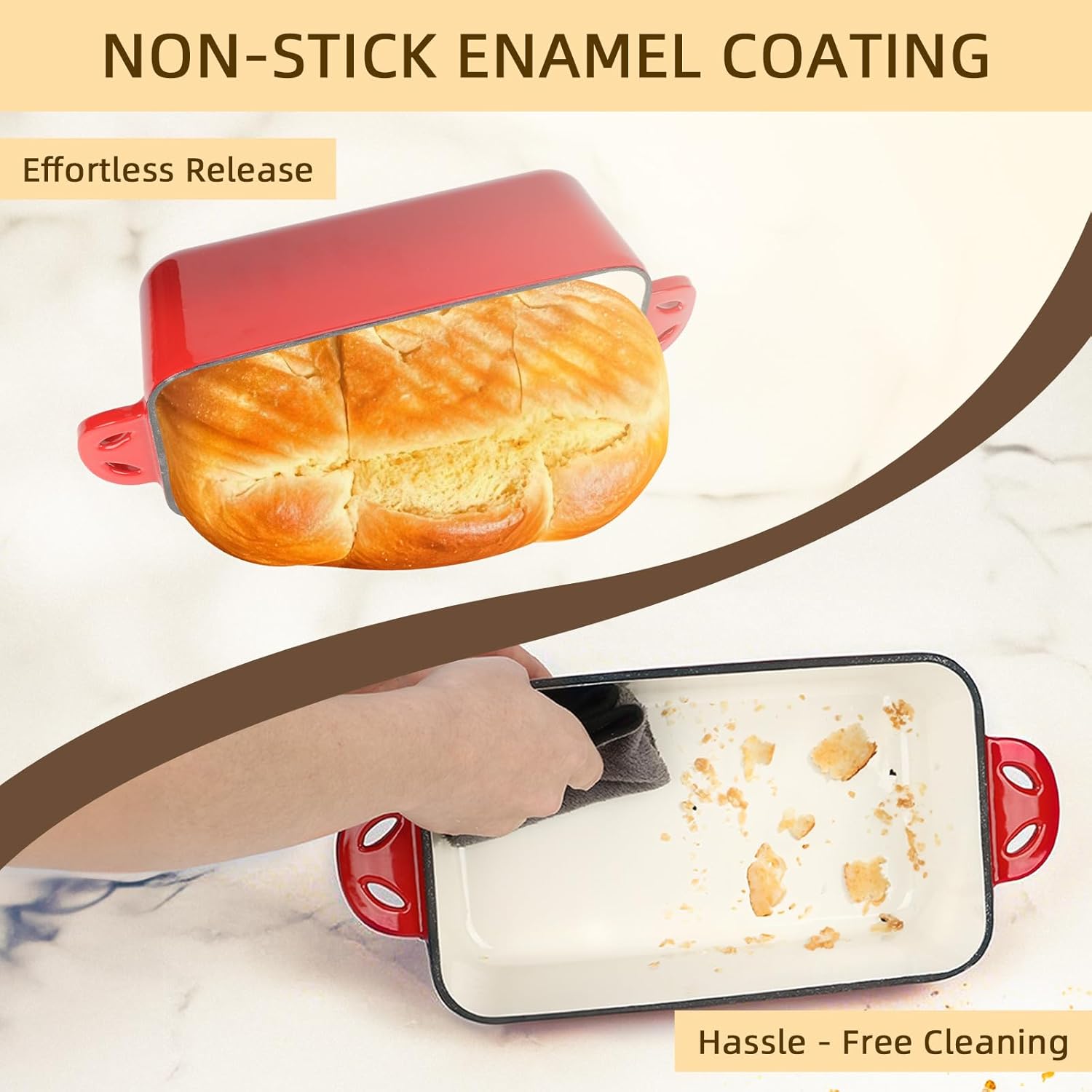 - 2-in-1 Versatility: Use enameled cast iron bread loaf pan separately or stack to mimic a Dutch oven; perfect for baking bread, meatloaf, lasagna and more