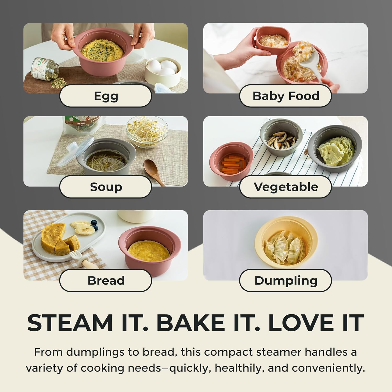 - From Purees to Family Feasts: One pot does it all! Prepare baby food, steam dumplings, or bake banana bread - all in a compact, stylish microwave steamer bowl that fits any kitchen (and comes in trendy colors!)