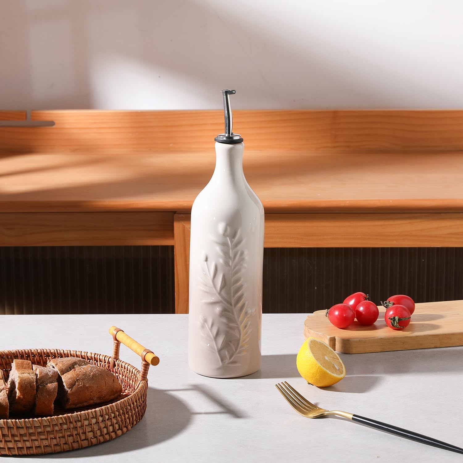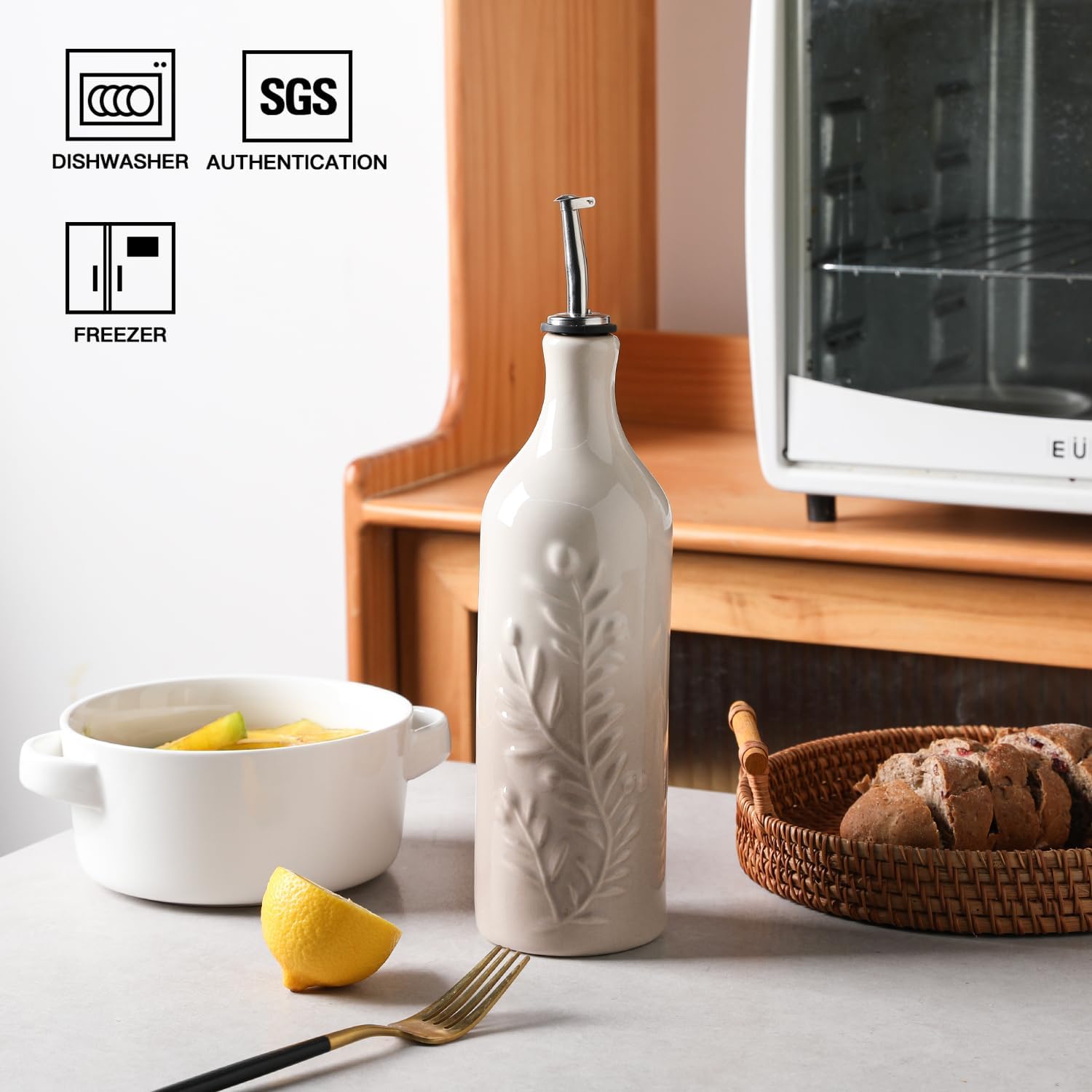 Sweejar Large Olive Oil Dispenser Bottle with Spout, 24 Oz Ceramic Oil Dispenser for Kitchen, Relief Opaque Cruet, Container for Cooking, EVOO, Vinegar, Pack of 1 (GradientFogGray)