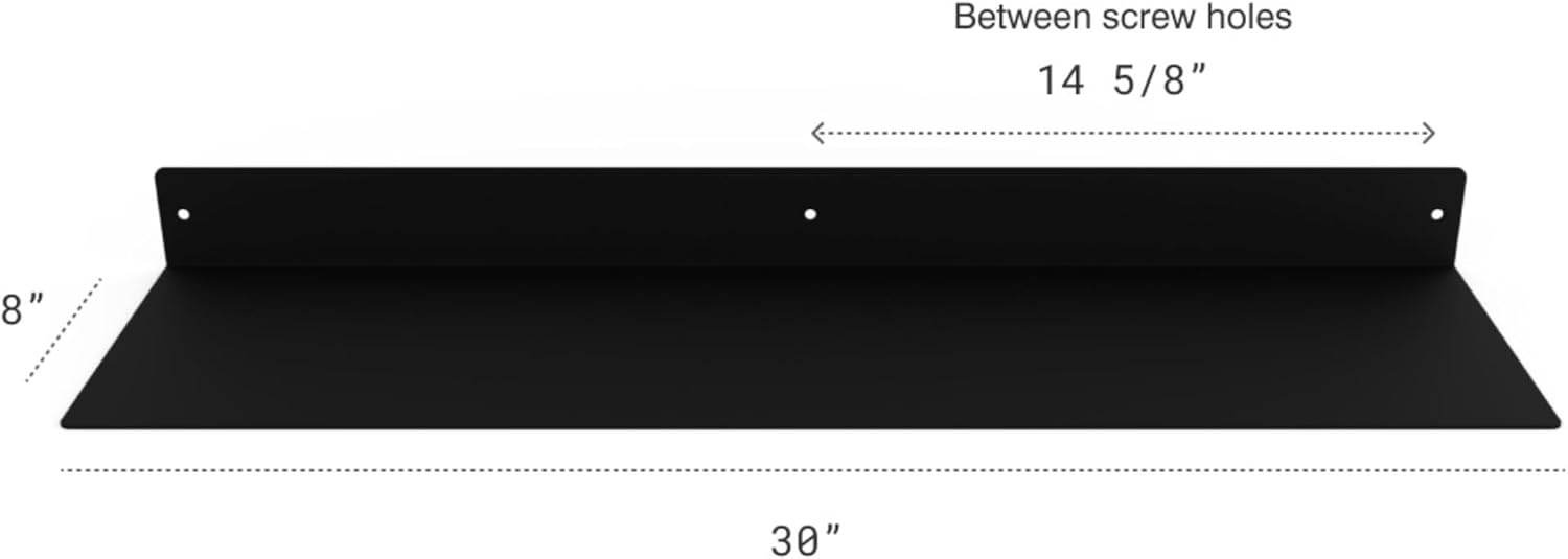 - DIMENSIONS & DETAILS: Measuring 30-inches long x 8-inches in depth, our steel floating shelf is made from 14 gauge raw steel and professionally powder coated black. The weight of the shelf is 6.5 LBS. It's perfect for displaying books, plants, bottles, picture ledges, and retail displays