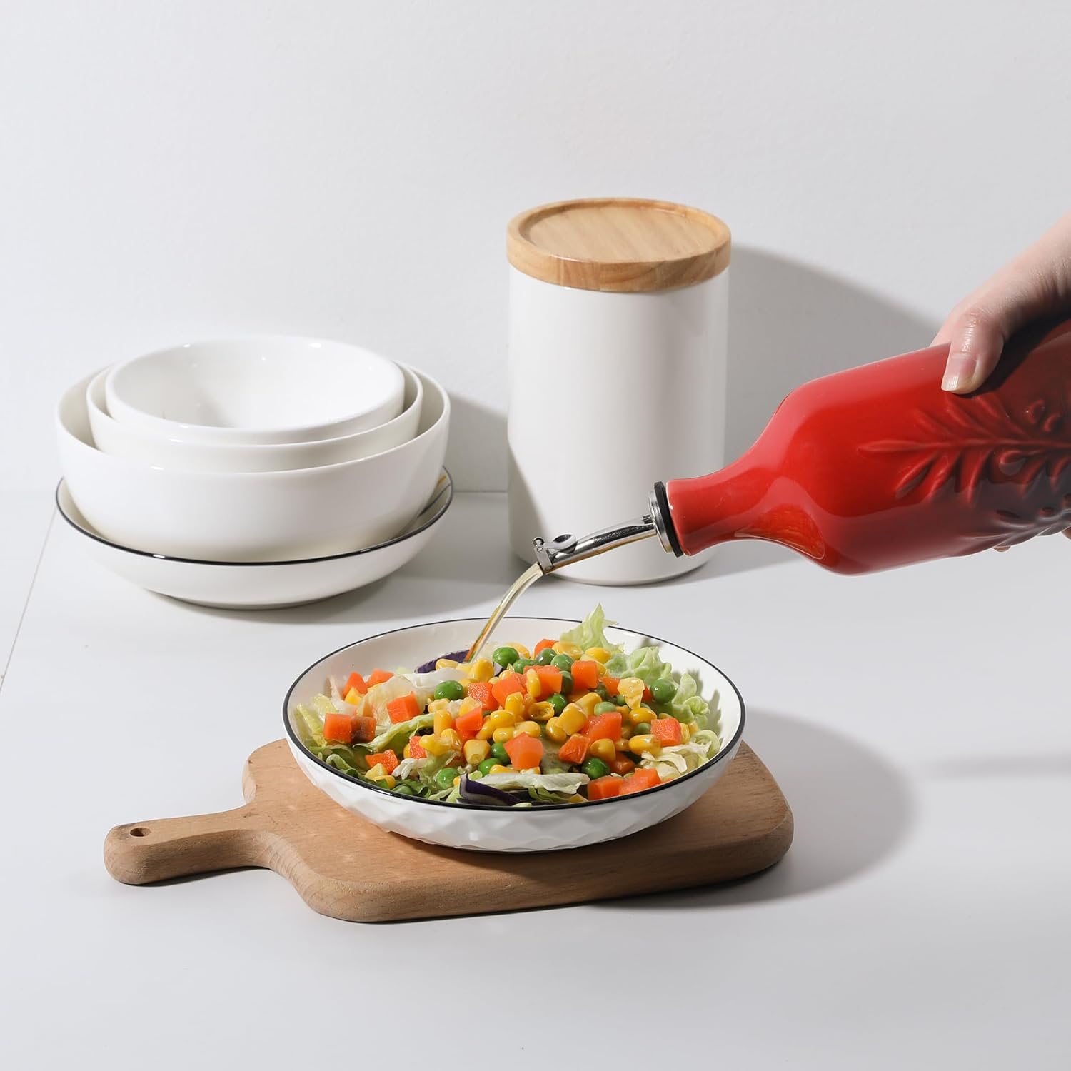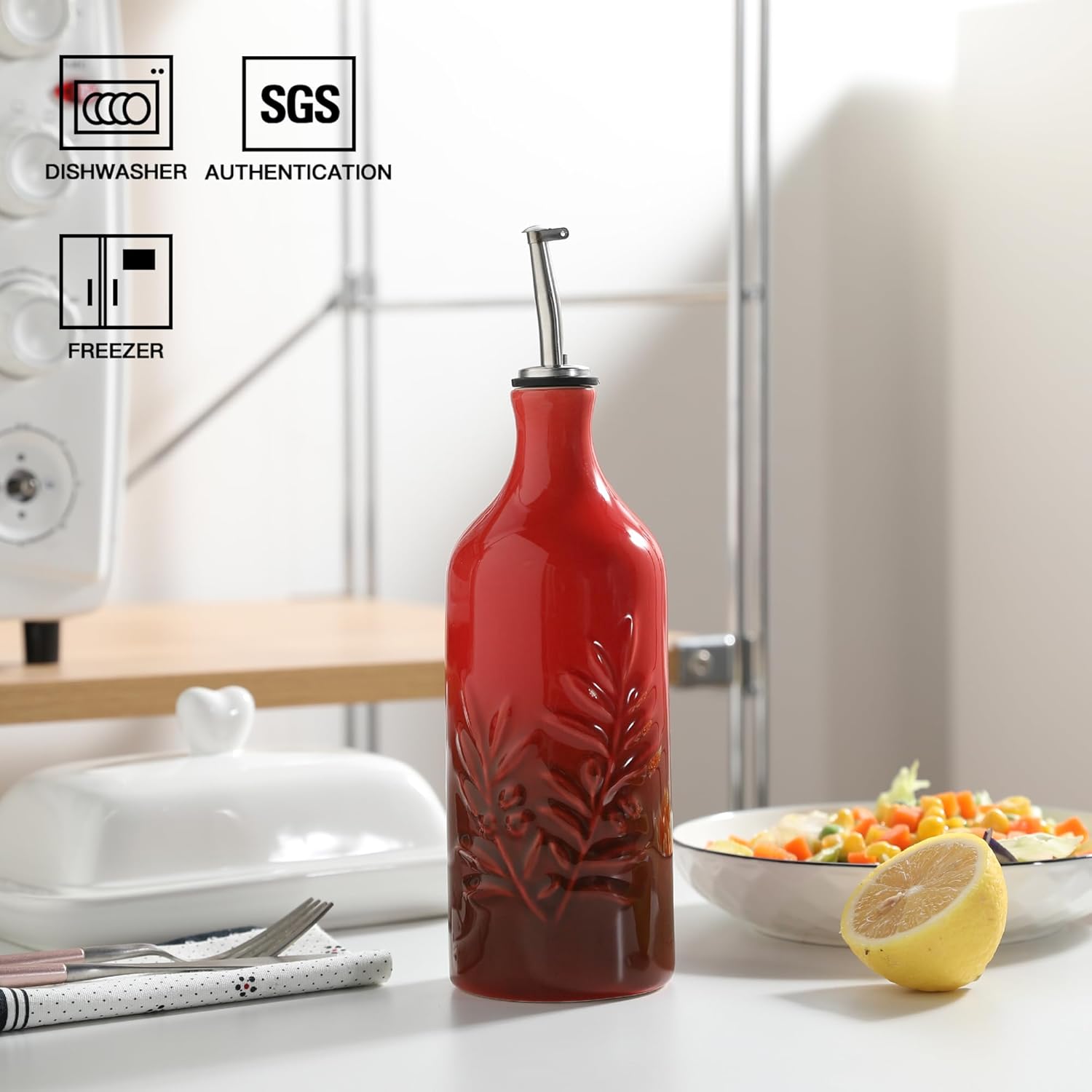 Sweejar Ceramic Olive Oil Dispenser Bottle, 20 Oz Relief Opaque Oil Cruet Protects To Reduce Oxidation, Suitable for Storage Vinegar, Soy Sauce, Coffee Syrup, Liquids, Set of 1 (Gradient Red)