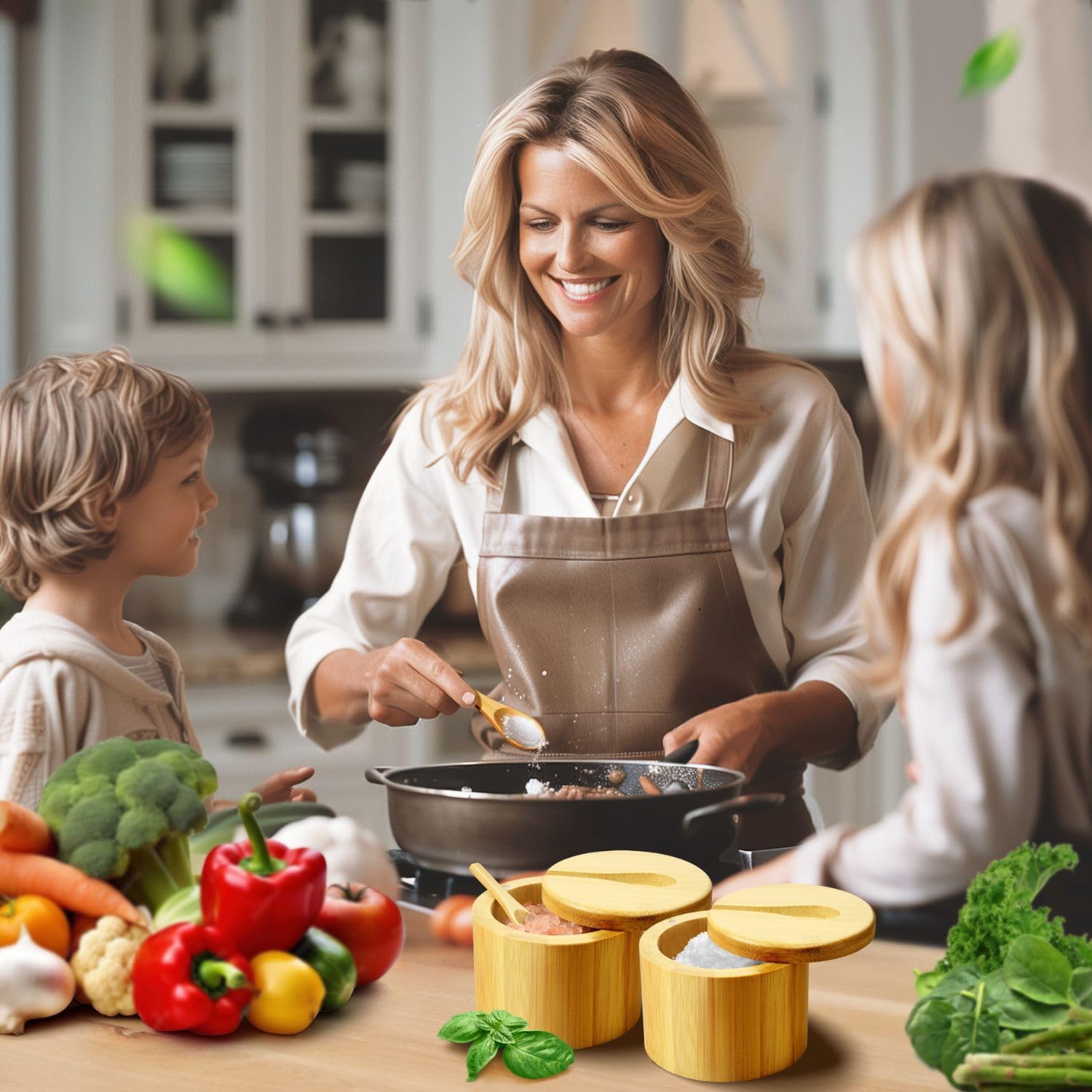 - Bamboo Material Advantage: This salt bowl with lid and spoon is crafted from durable and eco-friendly bamboo. Our stylish and functional salt box with swivel lid adds charm to the kitchen, grill, or dining table