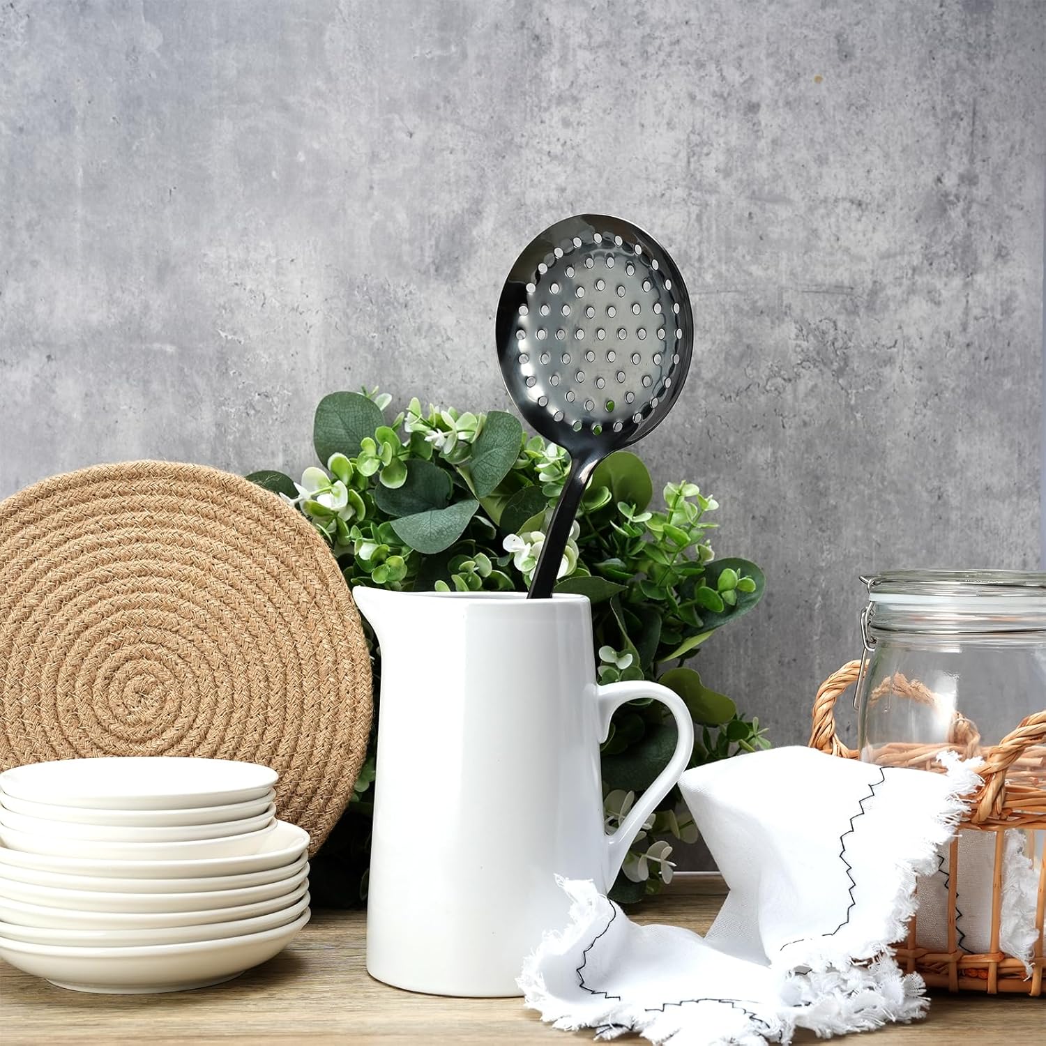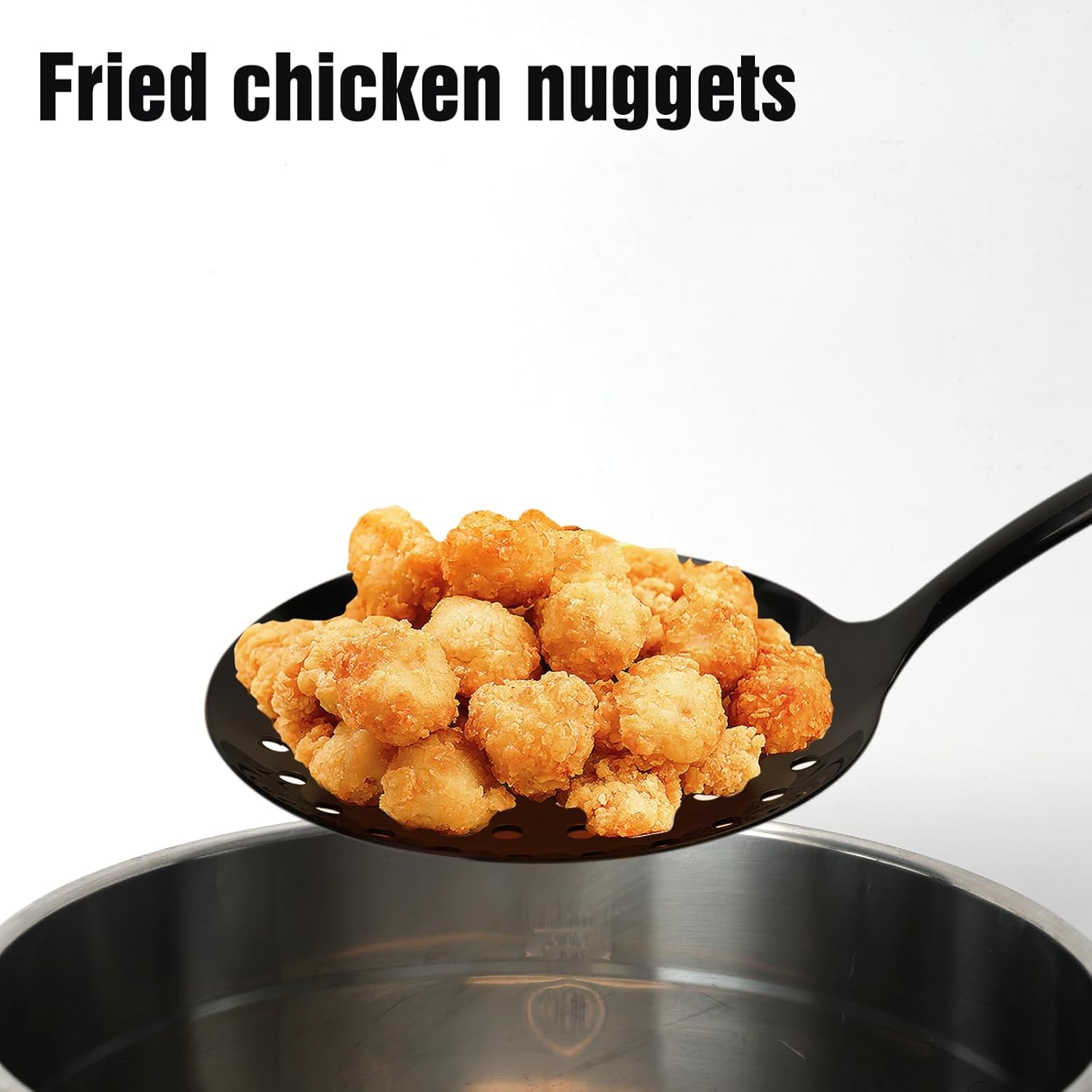 Skimmer Spoon, Slotted Spoons for Cooking, Slotted Spoon, Kitchen Stainless Steel Slotted Serving Spoon, Stainless Steel Strainer, Black