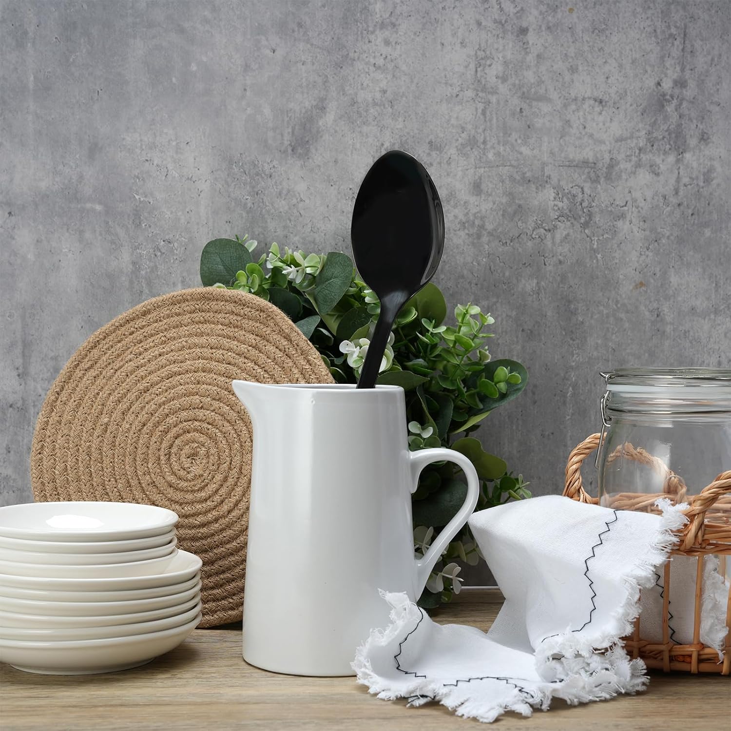 Stainless Steel Cooking Spoon Heavy Duty Basting Spoon Serving Spoons Stainless Steel Cooking Utensils with Non-Slip Ergonomic Handle, Black