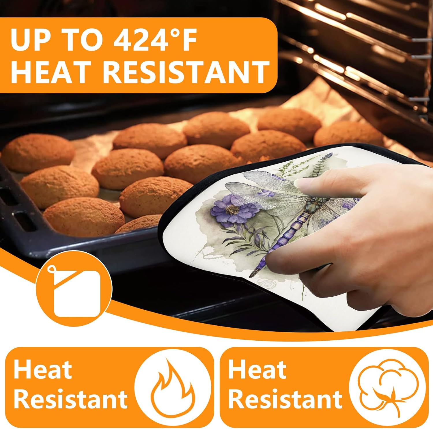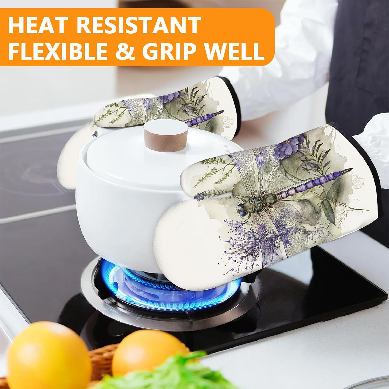 Dragonflies Oven Mitts and Pot Holders Sets 4Pcs,Extra Long Oven Gloves Potholder for Kitchen Cooking Baking BBQ 100% Cotton Heat Resistant