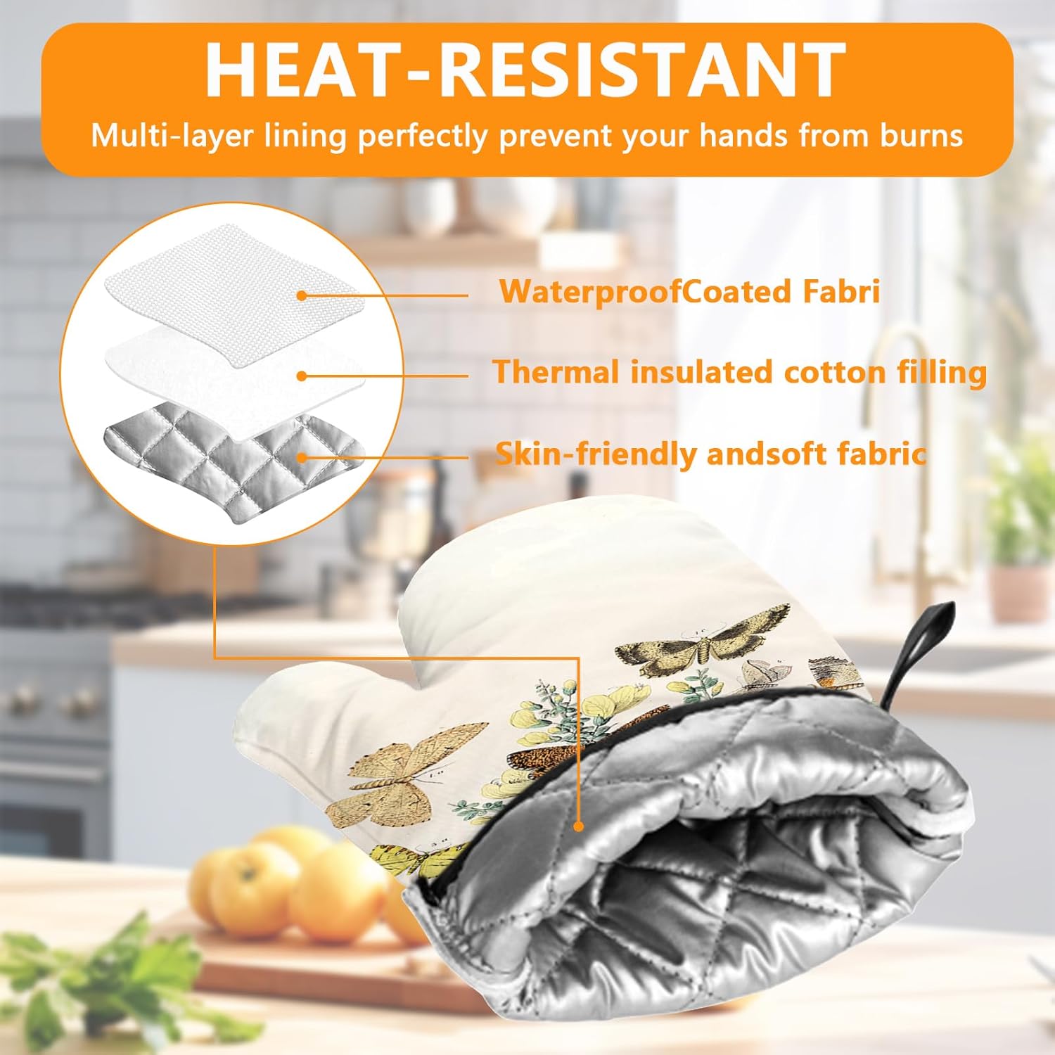 Wildflowers Butterfly Oven Mitts and Pot Holders Sets 4Pcs,Extra Long Oven Gloves Potholder for Kitchen Cooking Baking BBQ 100% Cotton Heat Resistant
