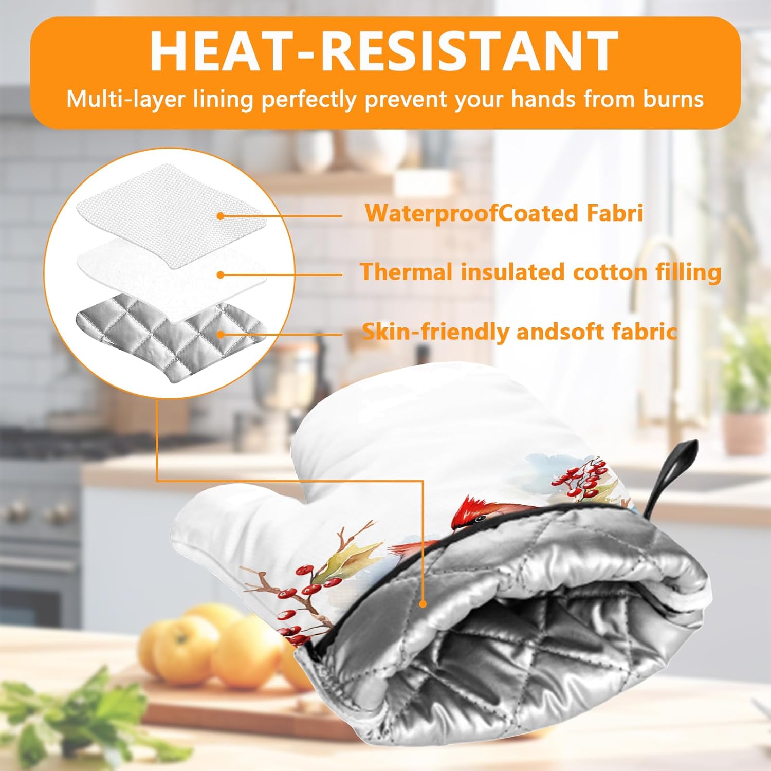 Red Cardinal Birds Oven Mitts and Pot Holders Sets 4Pcs,Extra Long Oven Gloves Potholder for Kitchen Cooking Baking BBQ 100% Cotton Heat Resistant