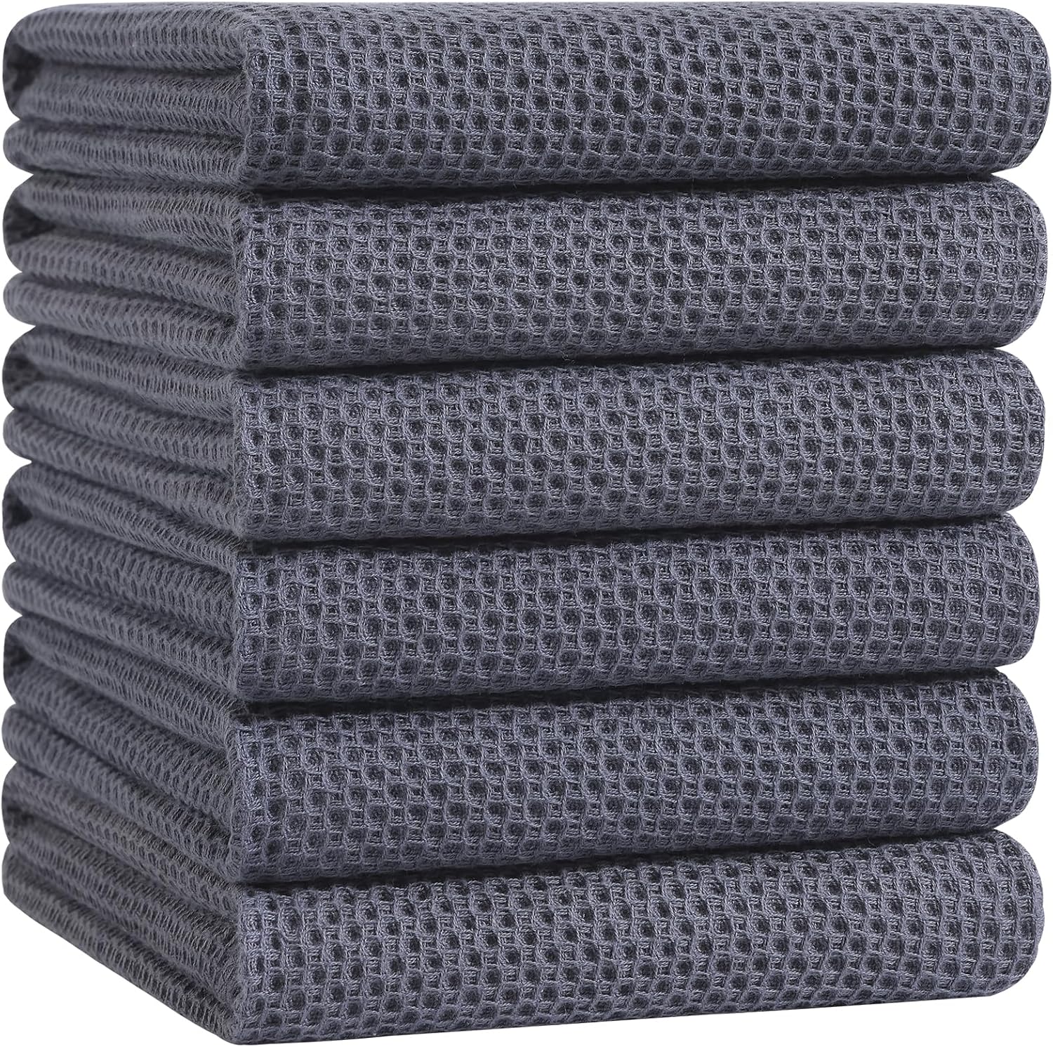 Homaxy 100% Cotton Oversized Waffle Weave Kitchen Dish Towels, Ultra Soft Absorbent Quick Drying Cleaning Towel, 20 x 28 Inches, 6-Pack, Dark Grey