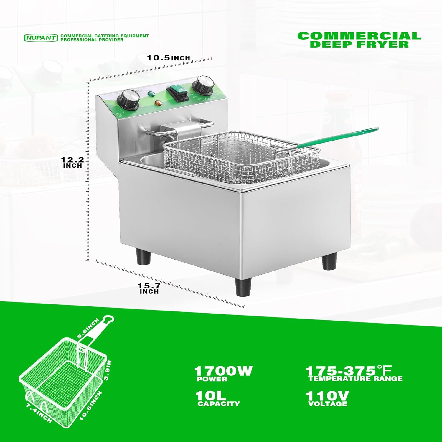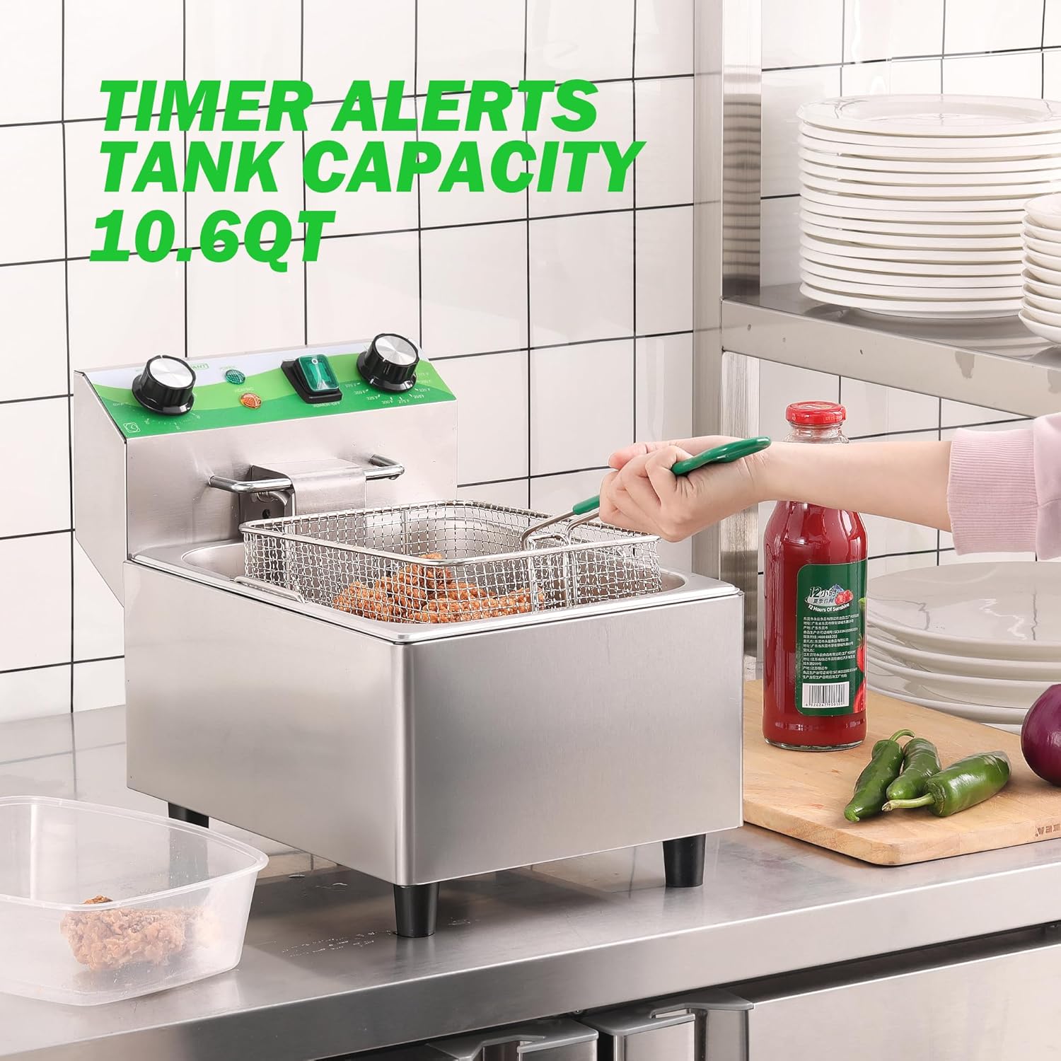 - [Large Capacity for Home & Business]: With 10.6 QT oil tank container and 6.35QT removable baskets, this deep fryer with basket for home use or commercial use conveniently cooks lots of food at once while allowing you to quickly drain and remove food from the countertop deep fryer commercial. Ideal for food truck, snack bar, party, events, family garthering and business use