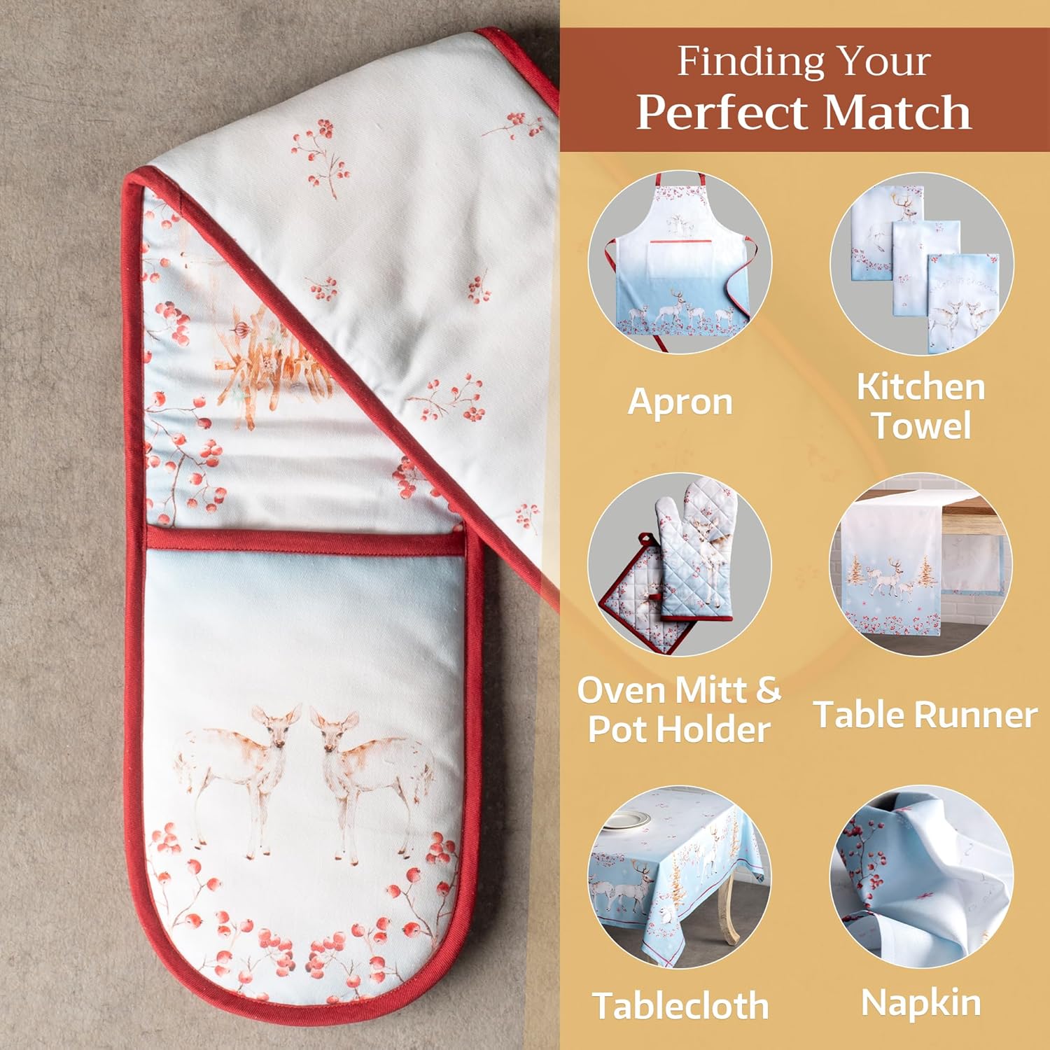 Maison d' Hermine Double Oven Mitt 100% Cotton Heat Resistant Cooking Gloves with Loop, Baking Barbeque, Handling Hot Pan, Fairytale Forest - Thanksgiving/Christmas (7 Inch x 35 Inch)