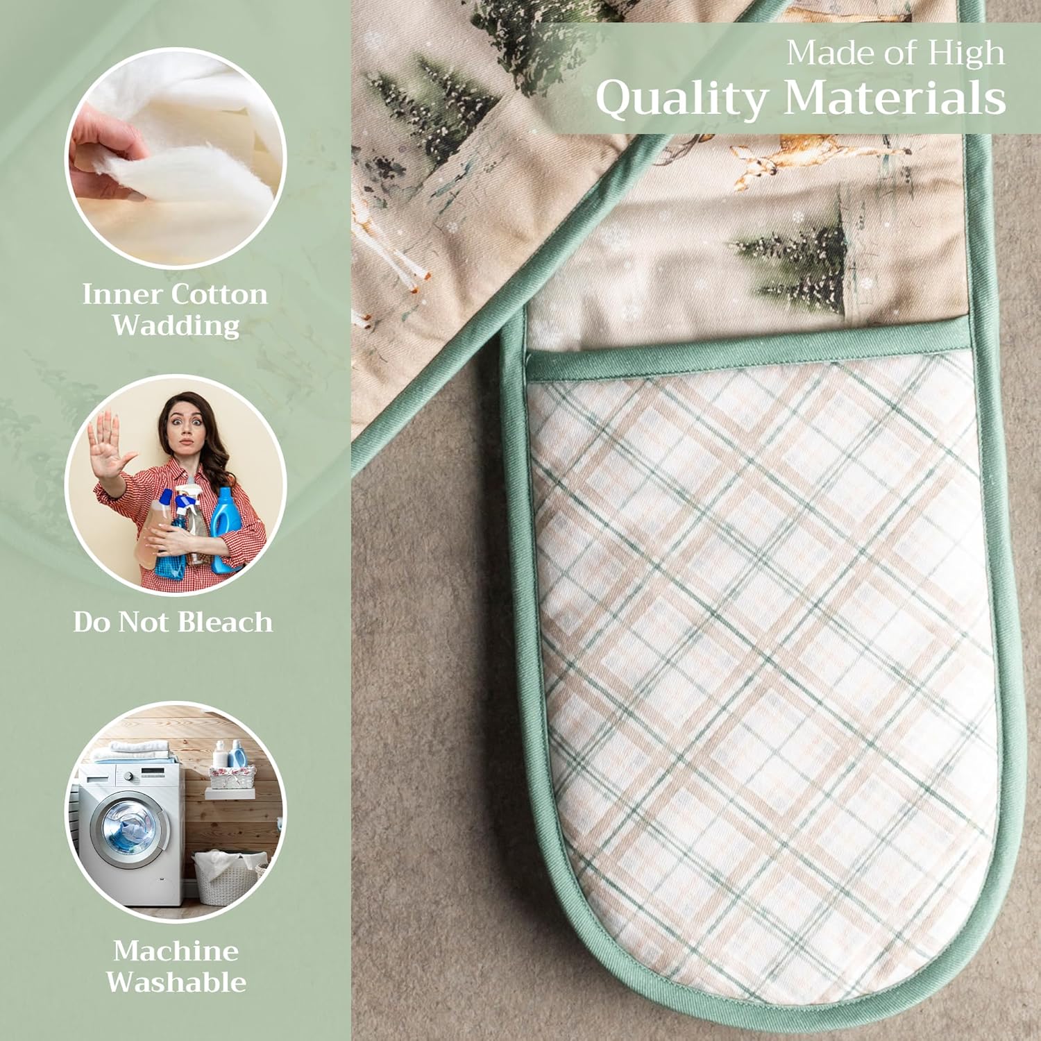Maison d' Hermine Double Oven Mitt 100% Cotton Heat Resistant Cooking Gloves with Loop, Baking Barbeque, Handling Hot Pan, Deen in The Woods - Thanksgiving/Christmas (7 Inch x 35 Inch)