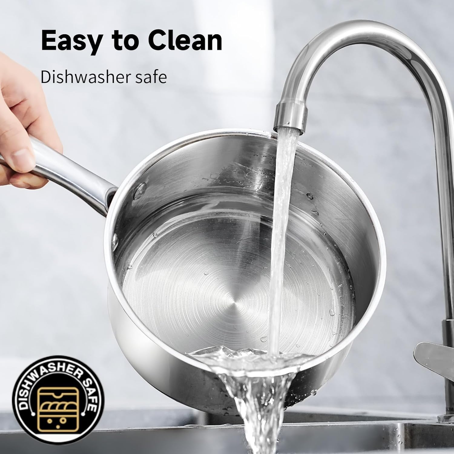 1Qt & 2Qt Stainless Steel Sauce Pan Set with Lid,4 Pcs Non Stick Saucepan,Small Kitchen Pots,Induction Compatible,PFOA FREE