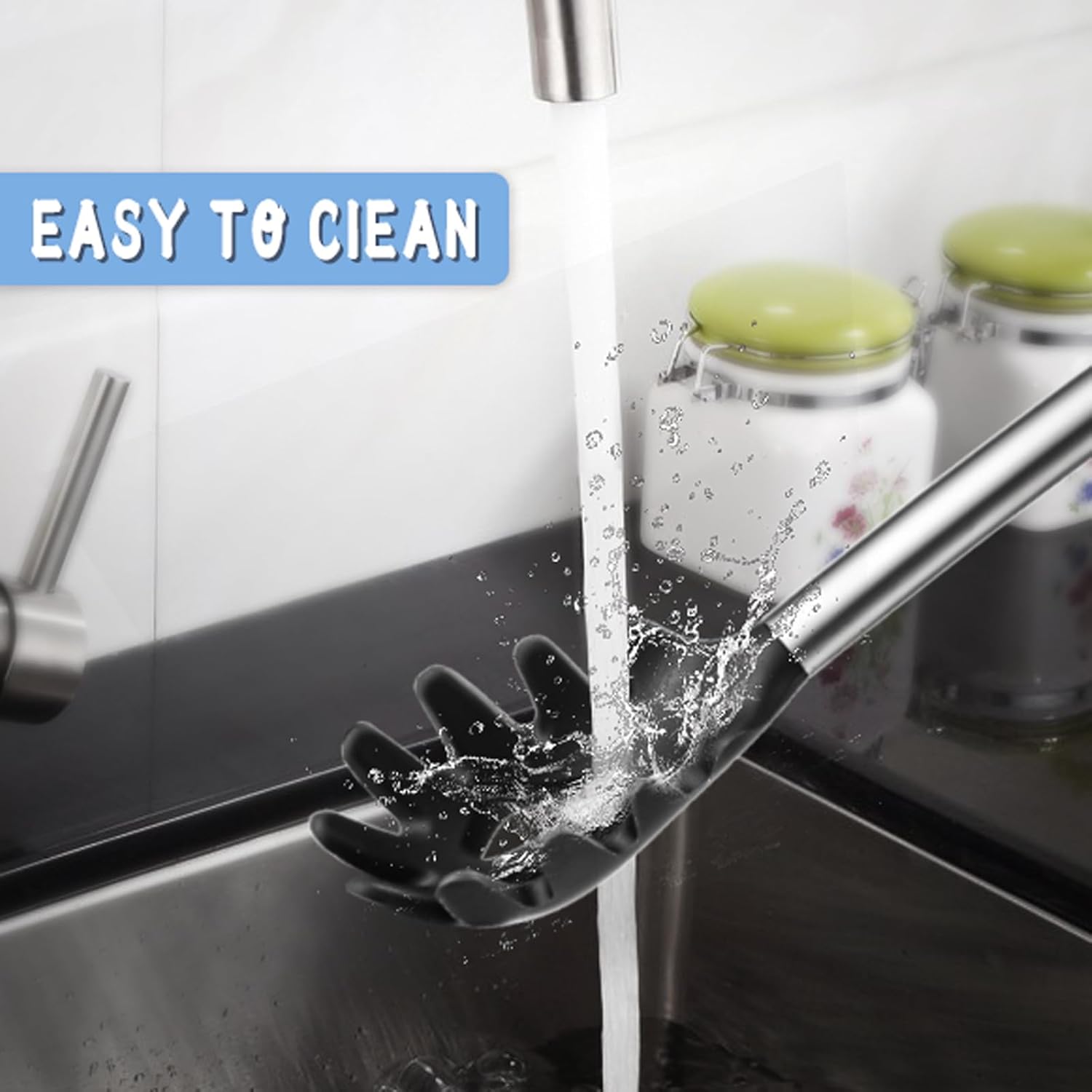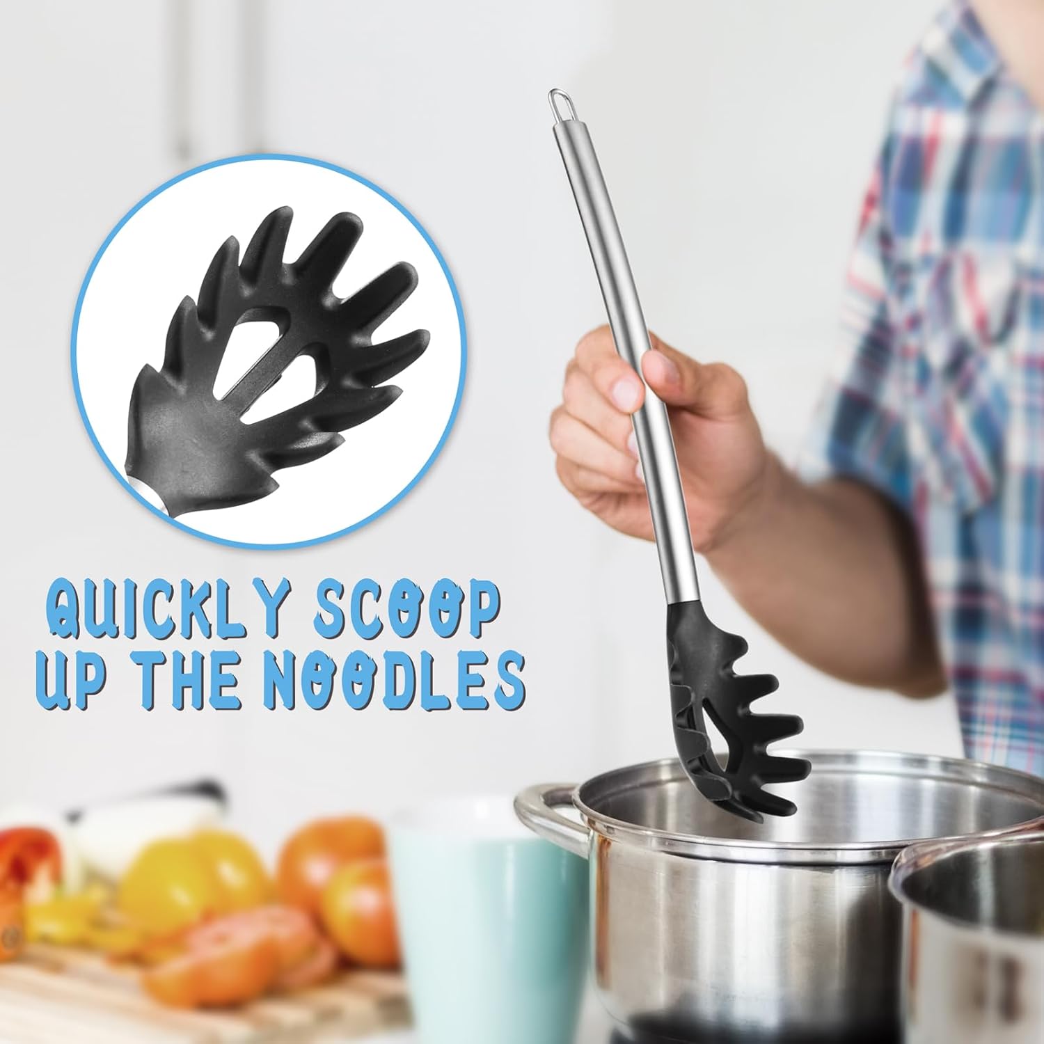 - Healthy and heat-resistant: The pasta spoon is made of silicone and stainless steel that can come into direct contact with food and has very good heat resistance, so don't worry about it melting into your food
